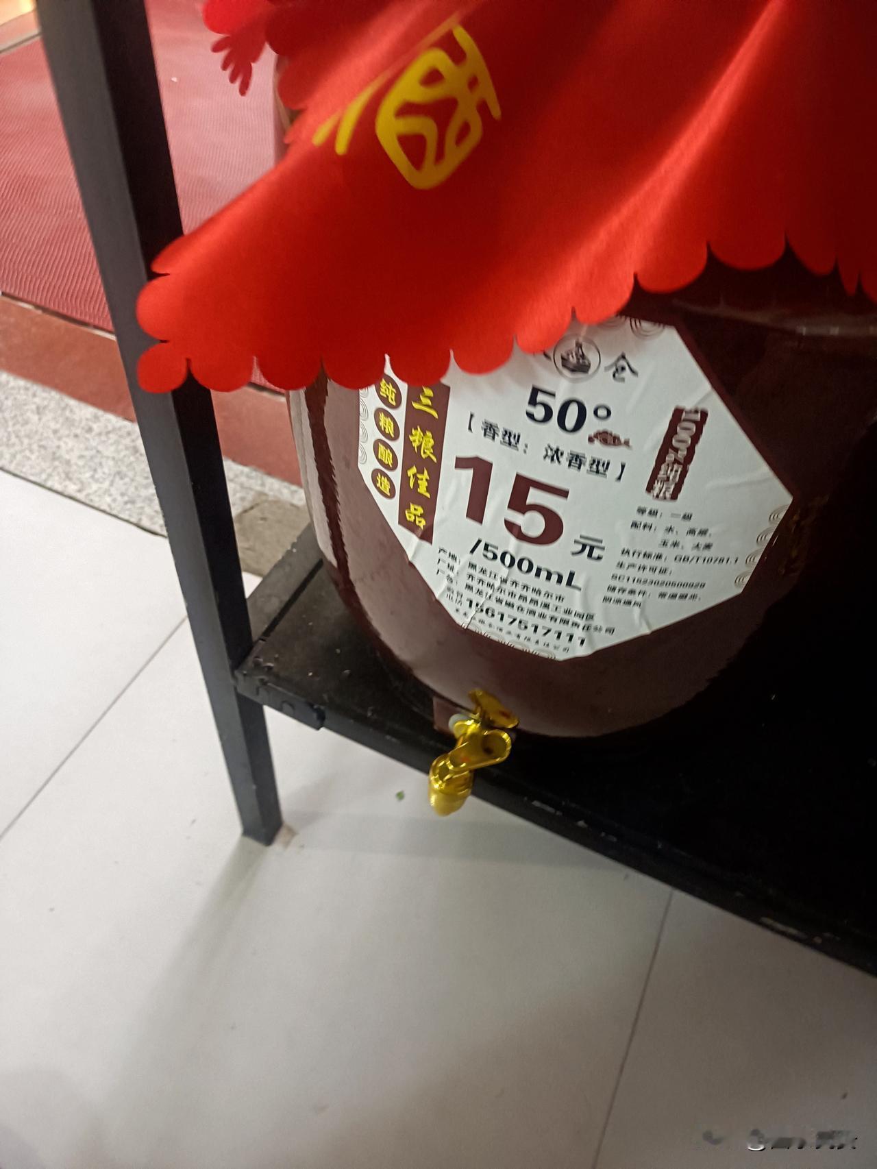 咱老百姓的“实惠口粮” 货架上这坛酒真接地气:50度浓香,500毫升才15块,原料是水、高粱、玉米这些家常货。红布盖着还挺喜庆,配个小龙头直接接酒喝。价格实在,味道够劲,就是咱普通人平时抿两口的实惠口粮,不用花大价钱也能过过酒瘾。