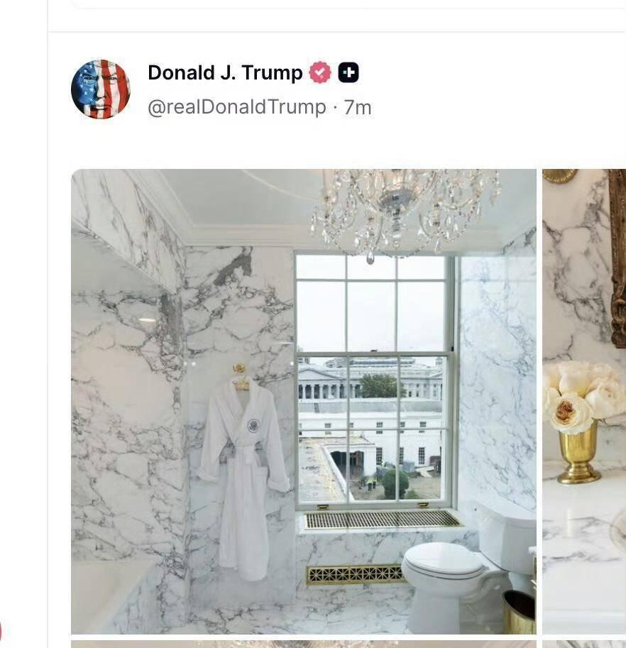 川普不愧为世界第一包工头,对工程建设是真上心! 川普在社交媒体上发了一张奇特的图片。图中是白宫厕所的马桶,而旁边的窗户外面,是白宫东翼豪华宴会厅的建设工地,施工现场和工人清晰可见。 有人不解这是啥意思。还用说吗?职业病呗!川普想告诉全世界,本人可是包工头出身,上厕所都会盯着施工现场,宴会厅是我的心头肉,都给我好好干!