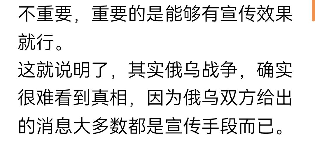 部分国人有多愚蠢和丧气,他们说俄乌战争看不到真相,双方都在大打宣传战,同一件事报道完全相反。哈哈,看不到真相就不看了?看不到真相就放弃,就认了?看不到真相就都不信了吗?大国小人,何以救之!何以醒之!