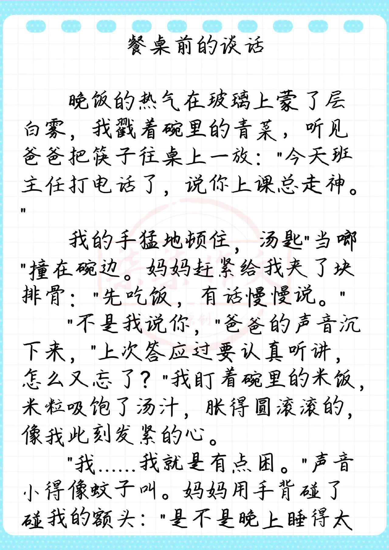 餐桌前的谈话500字作文作文素材 作文