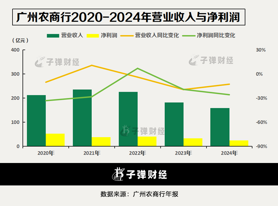 纵观广州农商行在过去五年的业绩表现,营业收入和净利润均呈现较为明显的回落态势。