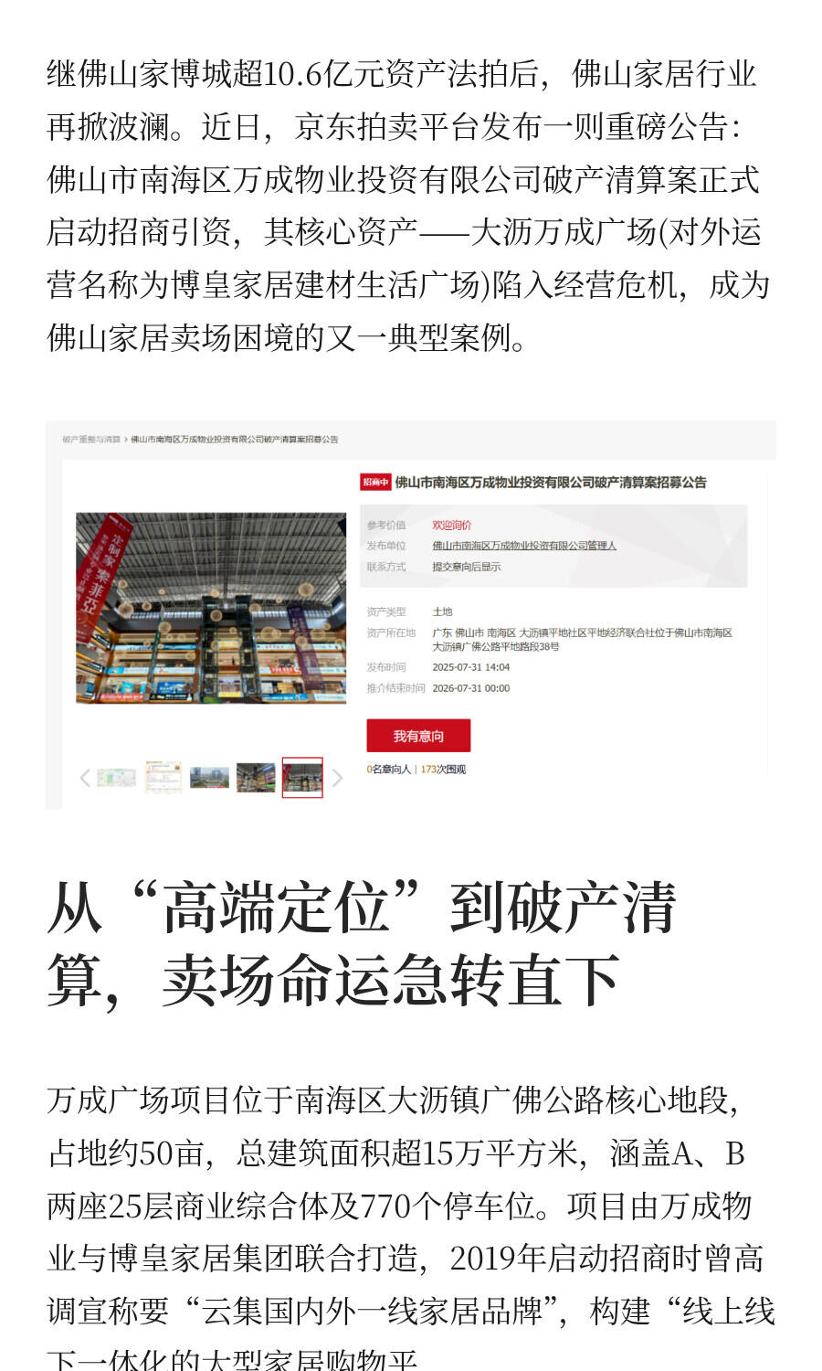10.6亿起!佛山家博城被法拍!欠租1.6亿!