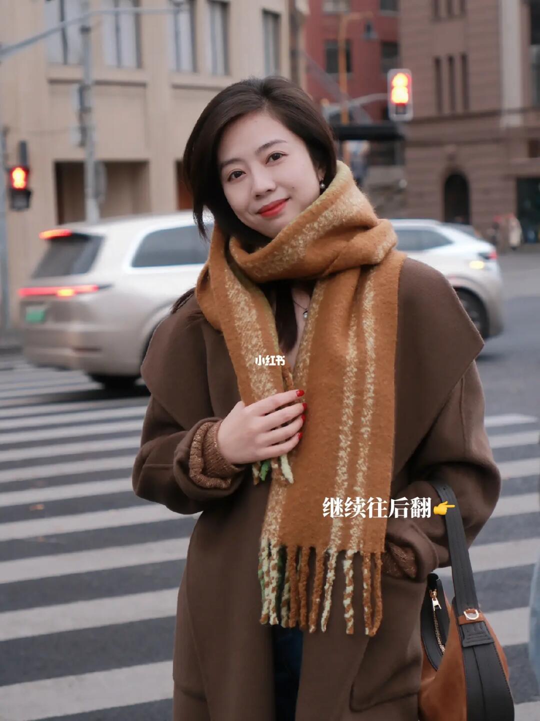 第一张照片穿的是上期直播自留的大衣,裹的是陈年的旧围巾,提着电脑💻,找安静的地方给大家敲字~ 后面几张是上海街头look,深冬来了,围巾让我感到安全。 抱~ ️