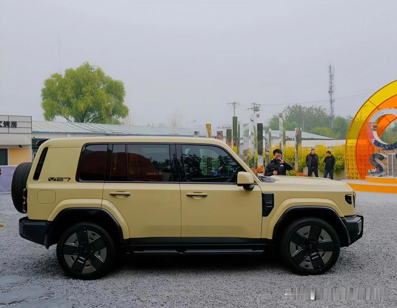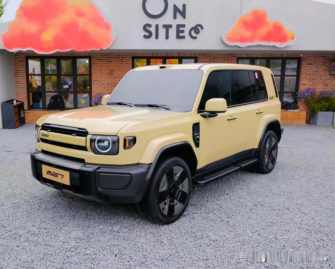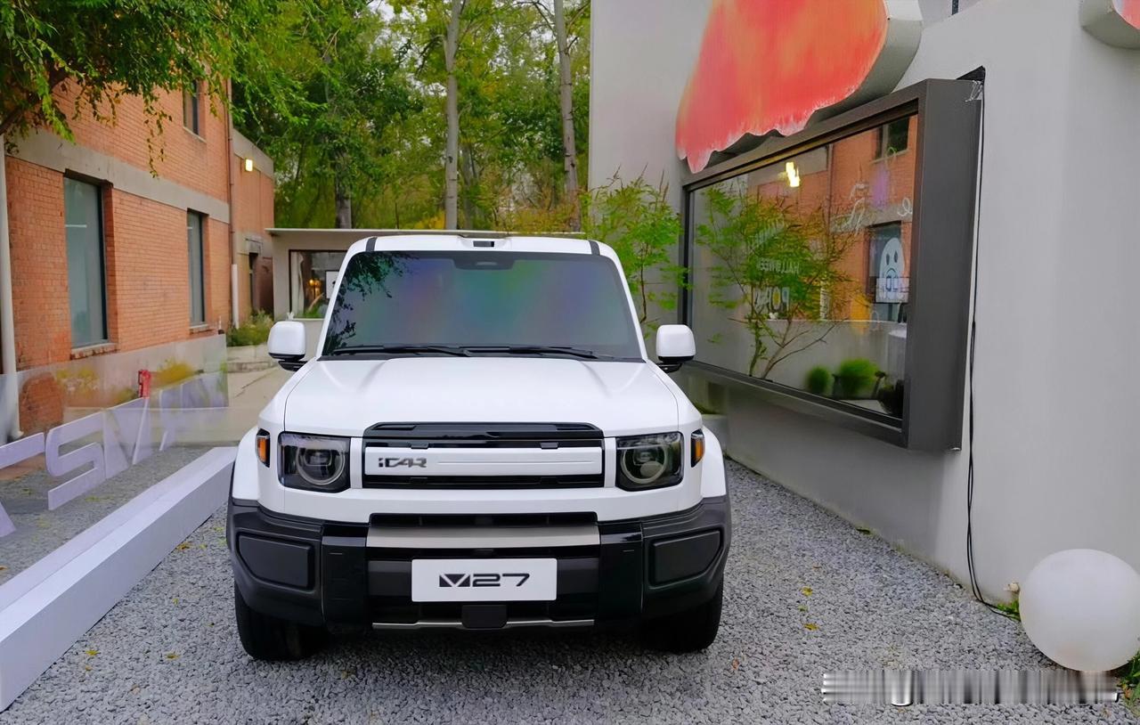 奇瑞颜值最高的车icar v27,看着小,实际上车长接近5米。 这种复古方盒子造型,虽然致敬了路虎卫士,陆巡,牧马人,某种意义上的取其精华去其糟粕。 听人劝吃饱饭,发布会上背的小书包换成备胎。 这种风阻大,车身重的车最适合增程,纯电的话,再大的电池高速路上也开不了多少公里。 11月上市,卖个19万左右,月销几千台问题不大。