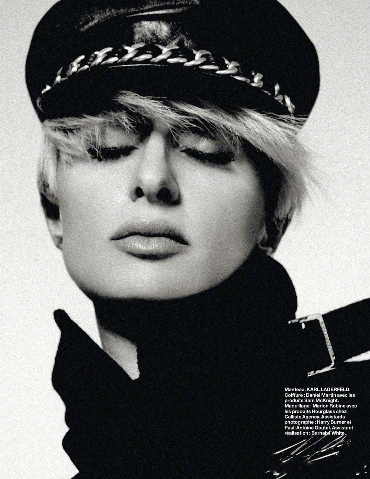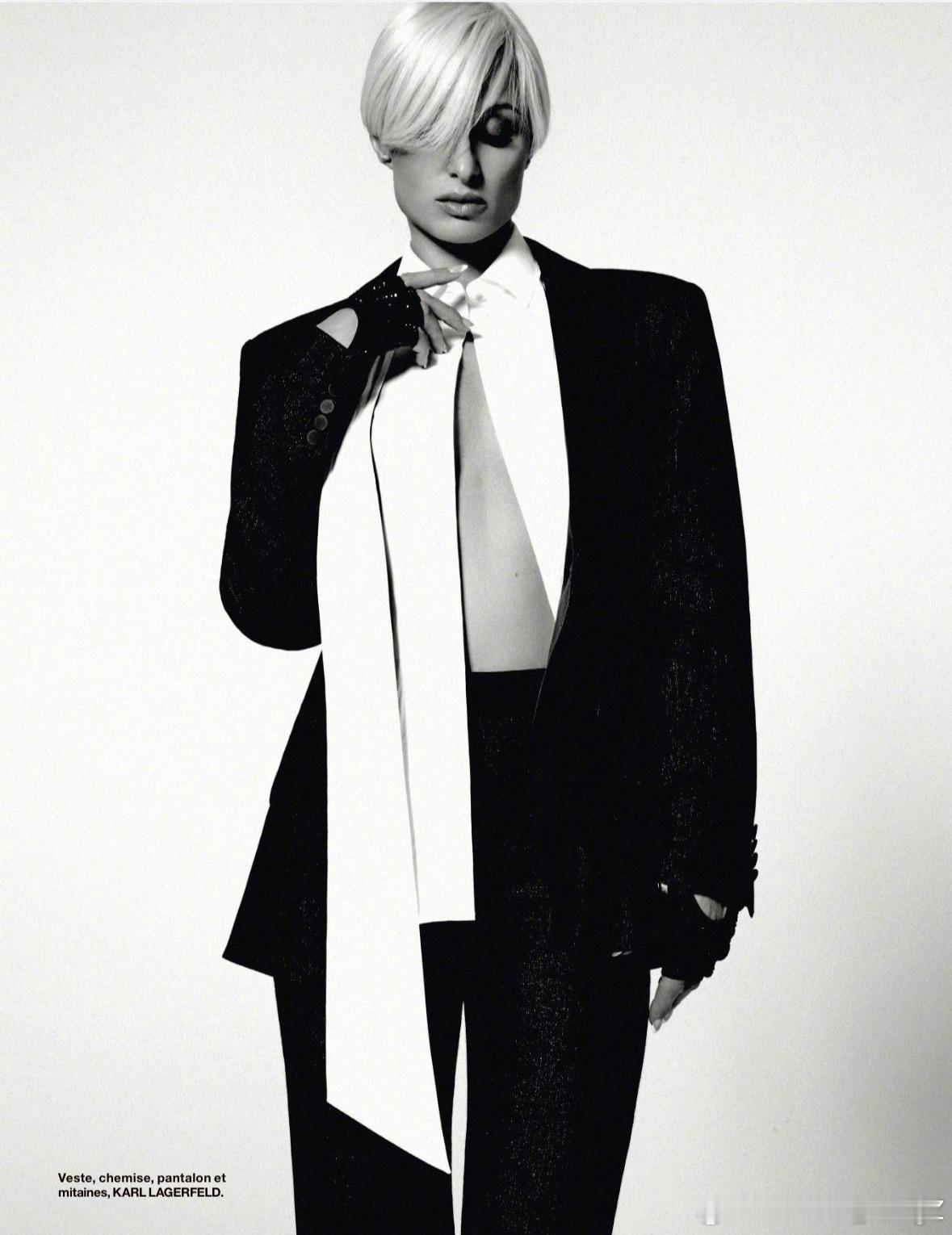 Numéro 杂志新刊封面,Paris Hilton 身着 Karl Lagerfeld 出镜演绎,她同时也拍摄了该品牌秋冬广告片(图九)。黑白色彩,Paris Hilton 的造型显然也在向 Karl 致敬。专访中,Paris 也回忆起自己和 Karl 曾经一同工作、交流的经历。