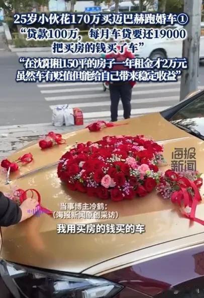 太有头脑了!辽宁一名25岁小伙为了挣钱,居然贷款100万,还拿出原本打算买房的钱,花170万买了辆迈巴赫,本以为他是为了炫耀,结果他专门用这辆车跑婚车,每月要还车贷19000,他解释称:虽说车会贬值,可它能给自己带来稳定收益! 这小伙操作挺颠覆。别人买房保值,他把买房钱砸进迈巴赫,还贷款百万,专门跑婚车。他在沈阳租150平的房,一年租金才2万,省下钱搞这辆“赚钱车”。 有人觉得他疯了,车贬值快,车贷压力大。但小伙觉得,沈阳婚车需求不小,迈巴赫接单价格高,勤快点接单,还车贷后能结余不少,比买房等涨跌靠谱。 但这事儿风险也大。车贷压力不说,婚车市场行情一变,或者车子出故障,维修保养都是大钱。而且车到手就贬值,以后想卖得亏不少。 小伙觉得年轻人就得敢闯,现在就业卷,死工资难发财,不如搞“另类投资”。他身边有朋友搞婚车车队,收入比上班强,他这迈巴赫档次高,接单溢价空间大,运营好能赚钱。 现在年轻人消费投资观念在变,不少人觉得房子捆绑多,不如投在能快速收益的地方。这小伙把车当创业工具,赌婚车市场红利期。 这路子不是谁都能复制,得扛住贷款压力,会维护车,还得有市场眼光接单。哪个环节掉链子,可能就从赚钱变赔钱。 你觉得这小伙路子靠谱不?你有钱会买房还是搞“赚钱车”?来评论区聊聊。