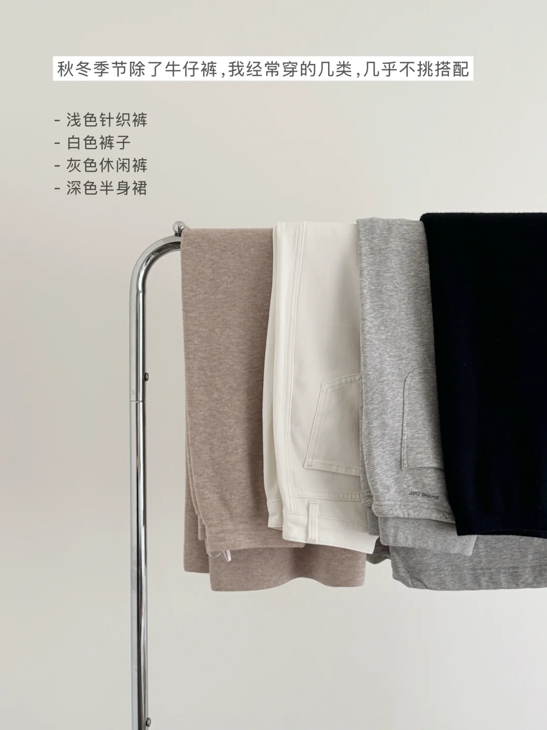 直筒裤和阔腿裤利用率很高,基础色基础款不挑上装