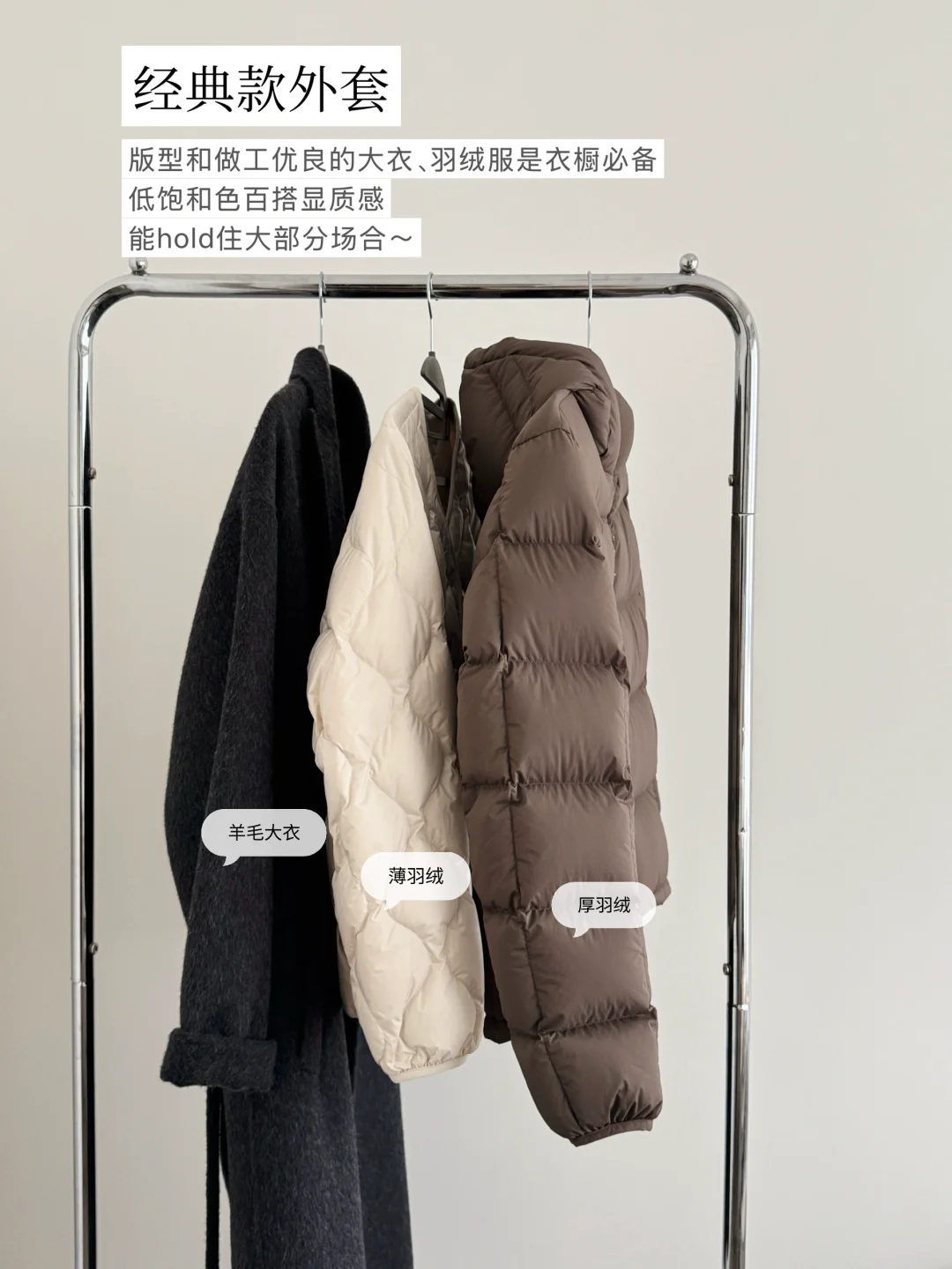 版型和做工优良的大衣、羽绒服是衣橱必备,经典百搭显质感,能hold住大部分场合