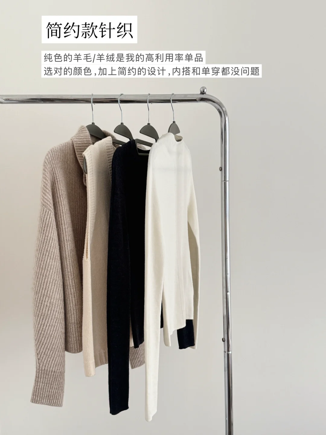 优先考虑纯色的羊毛/羊绒,还要兼顾内搭和单穿