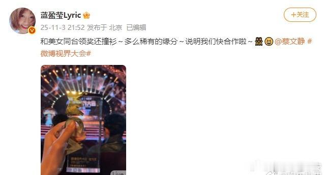 微博盛典上,蔡文静和蓝盈莹撞衫同框,却演出了两种截然不同的“戏码”。 蔡文静全程绷着,嘴角紧抿、视线躲闪,身体像被钉住似的,隔着屏幕都能感受到尴尬。而蓝盈莹却笑盈盈的,眼睛弯成月牙,动作舒展自如,连头发丝都透着松弛感。 同样是撞衫,一个像“硬着头皮走红毯”,一个像“主场秀场”。蓝盈莹的底气,全写在脸上——她不怕比美,更不怕被比下去。这种“不争就是赢”的智慧,才是真高级!