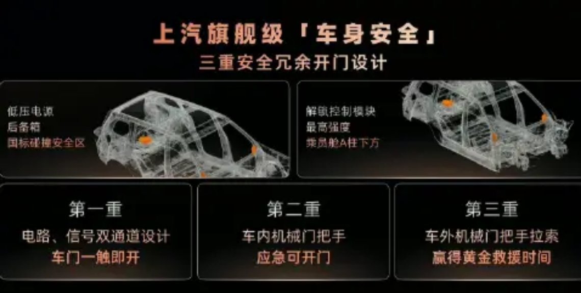 智己LS9也有三重安全冗余开门设计,安全现在是各家关注的重中之重。