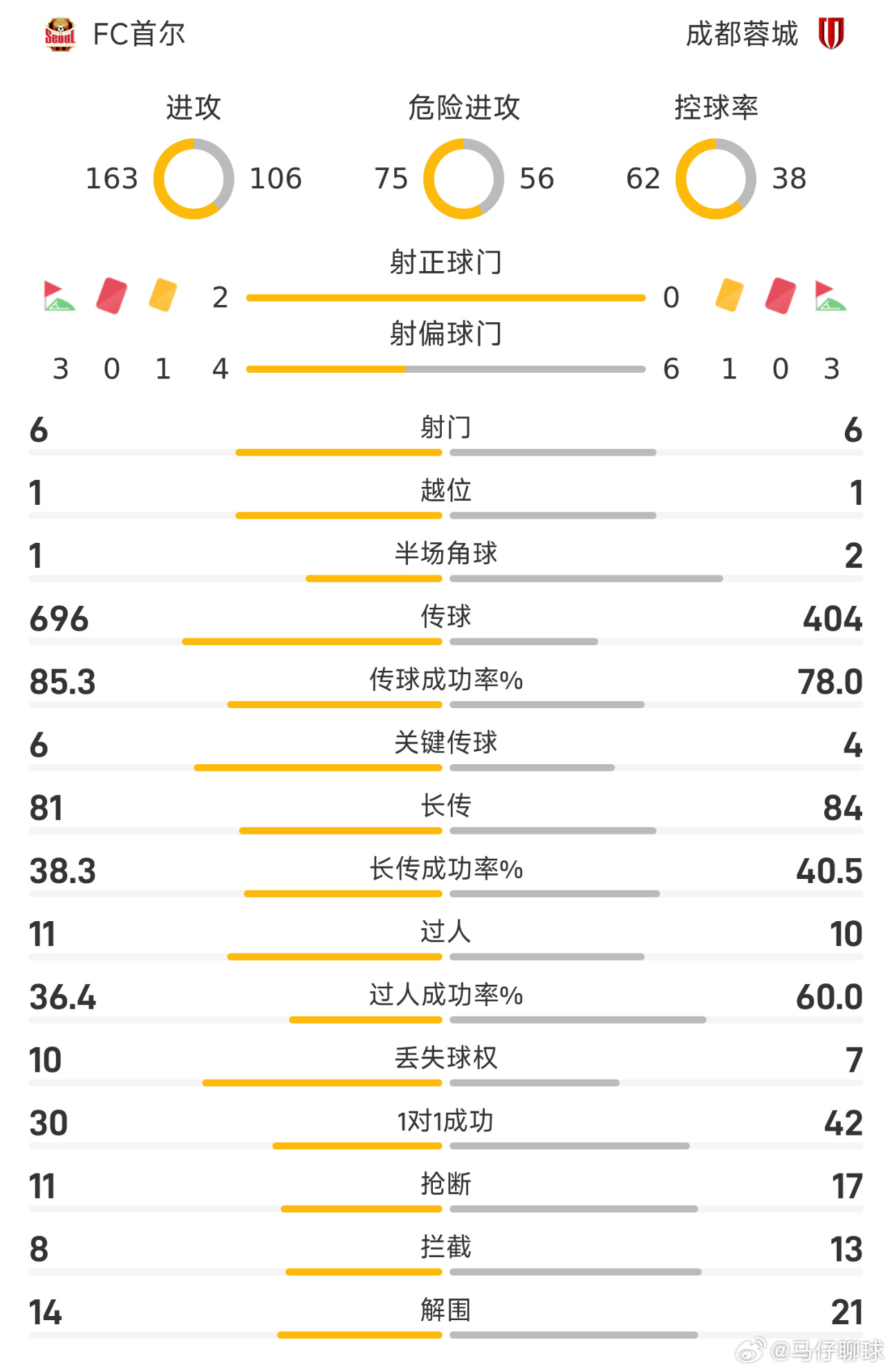 11月04日讯 25/26赛季亚精英赛东亚区第4轮,FC首尔0-0互交白卷闷平成都蓉城。上半场罗慕洛受伤离场,林加德远射造险,下半场费利佩头球顶偏,随后费利佩破门因犯规在先被吹无效。