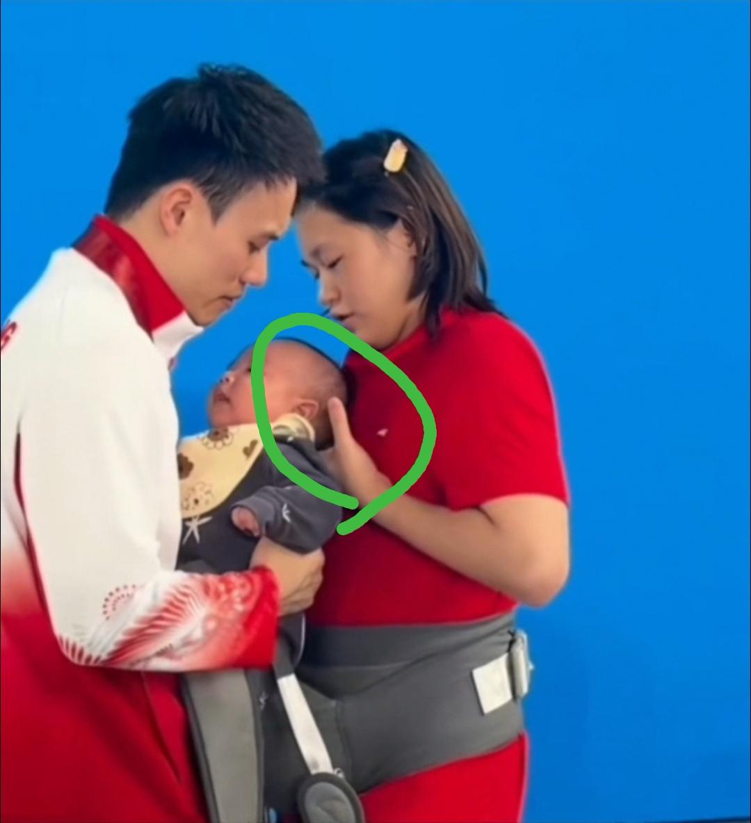 全红婵比赛、带娃,两不误。从容淡定夺冠,乐趣无穷。 细观之,一举一动很内行。跳水专业,想不到带娃也是无师自通。 当把小孩交给师兄谢思埸时,用手小心翼翼托着宝宝的头部,细节可谓懂行。