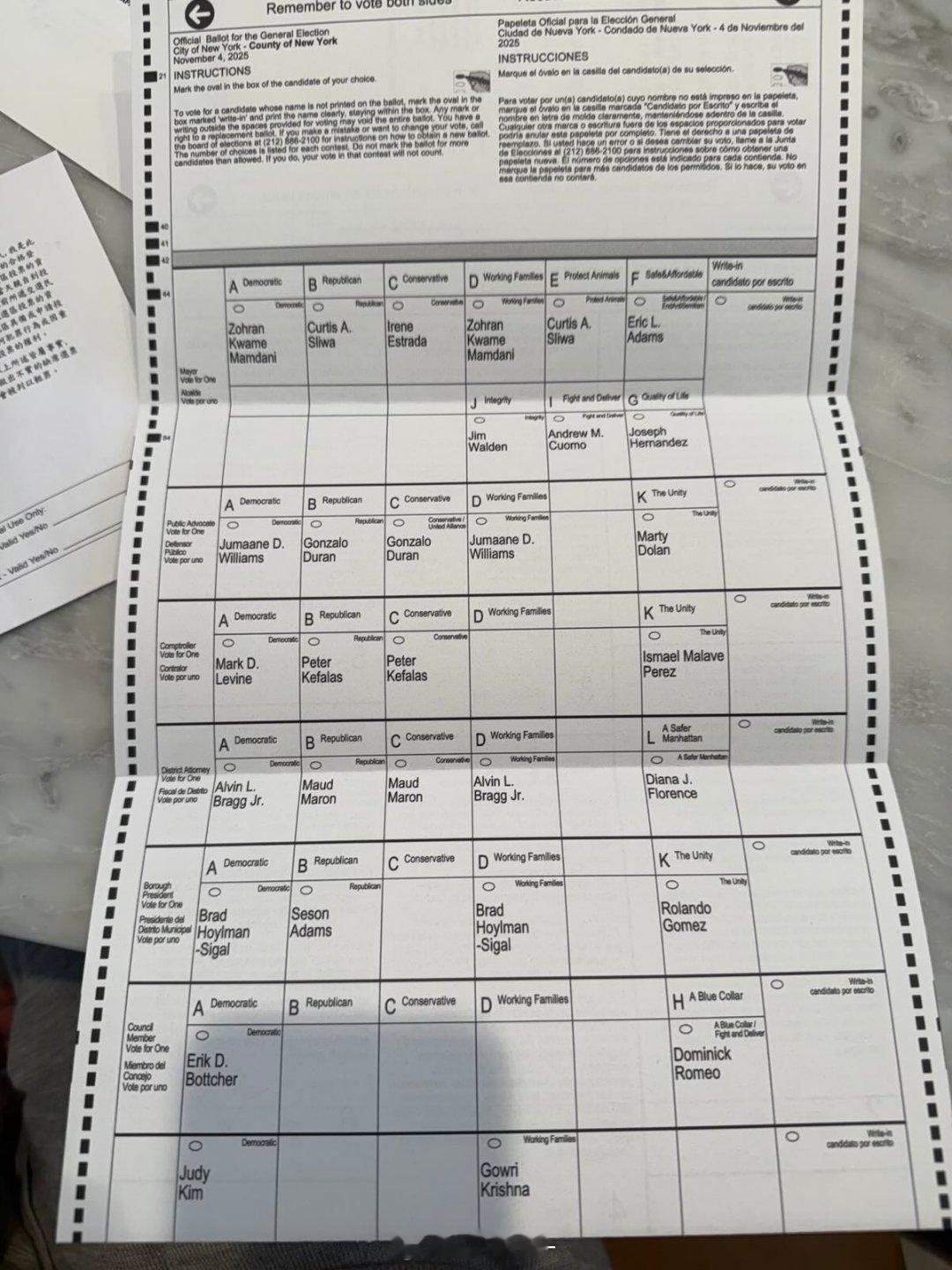 纽约市长选举正在投票美国纽约市长选举正在投票,三名主要候选人,分别是以独立身分