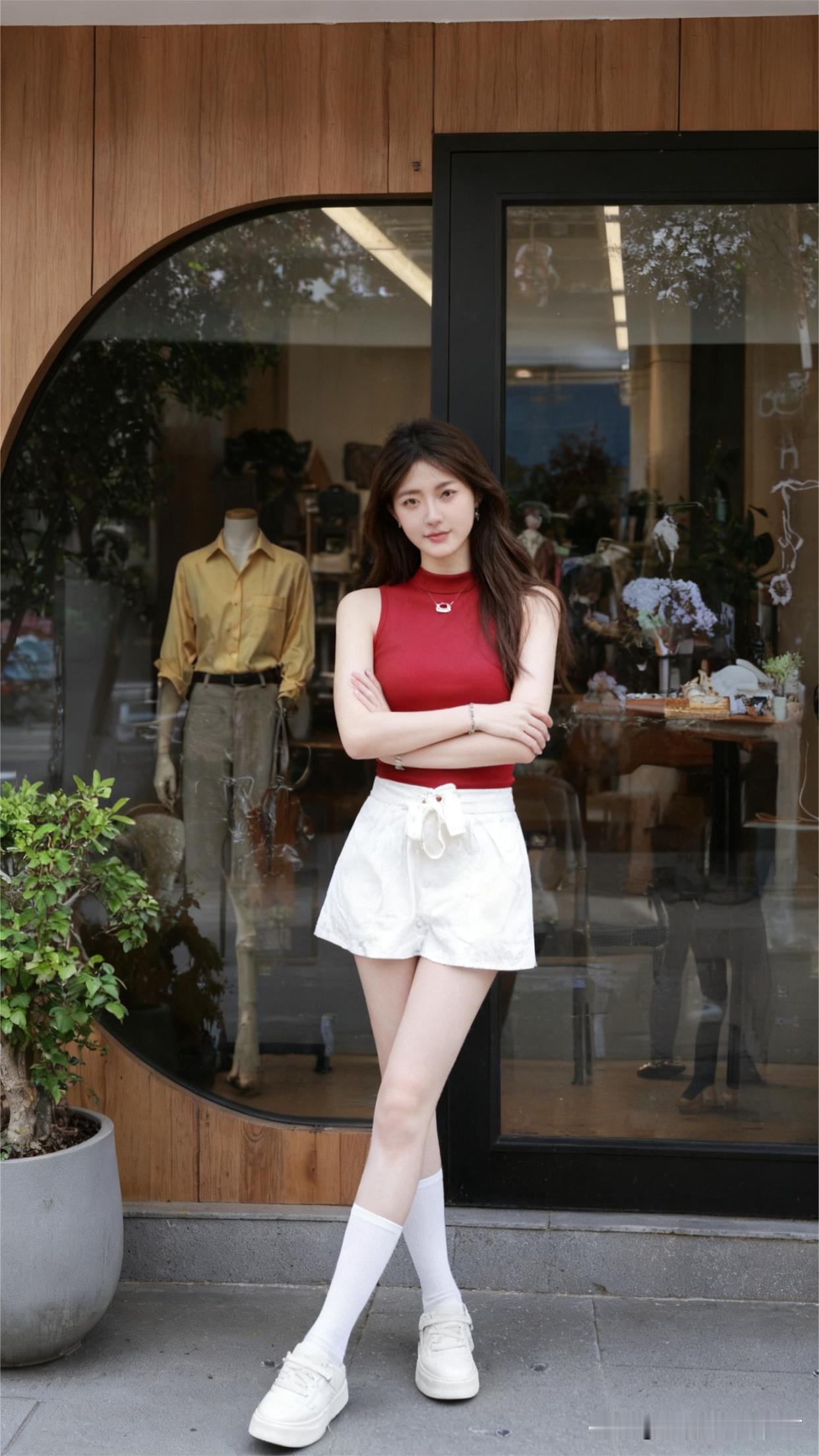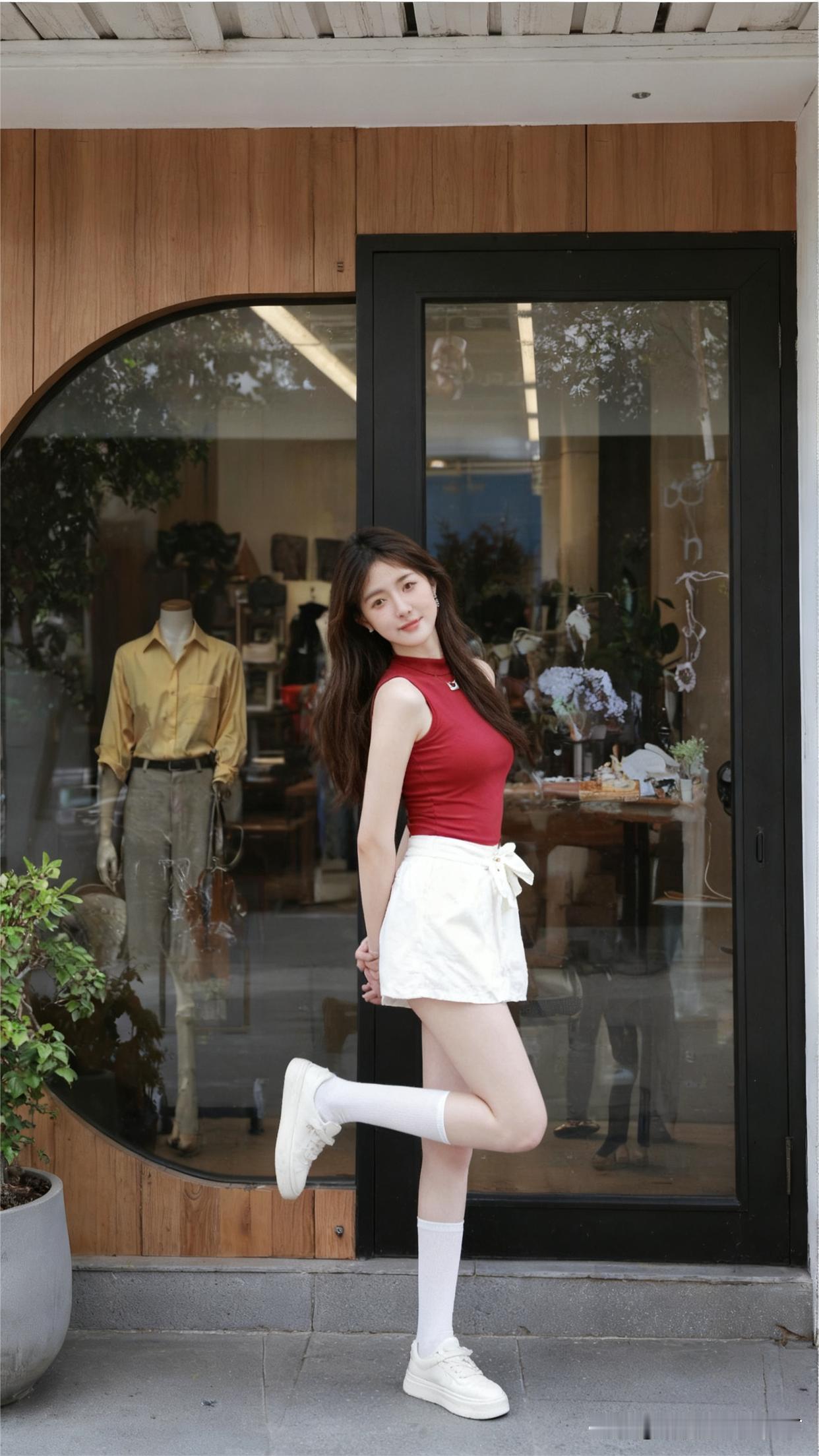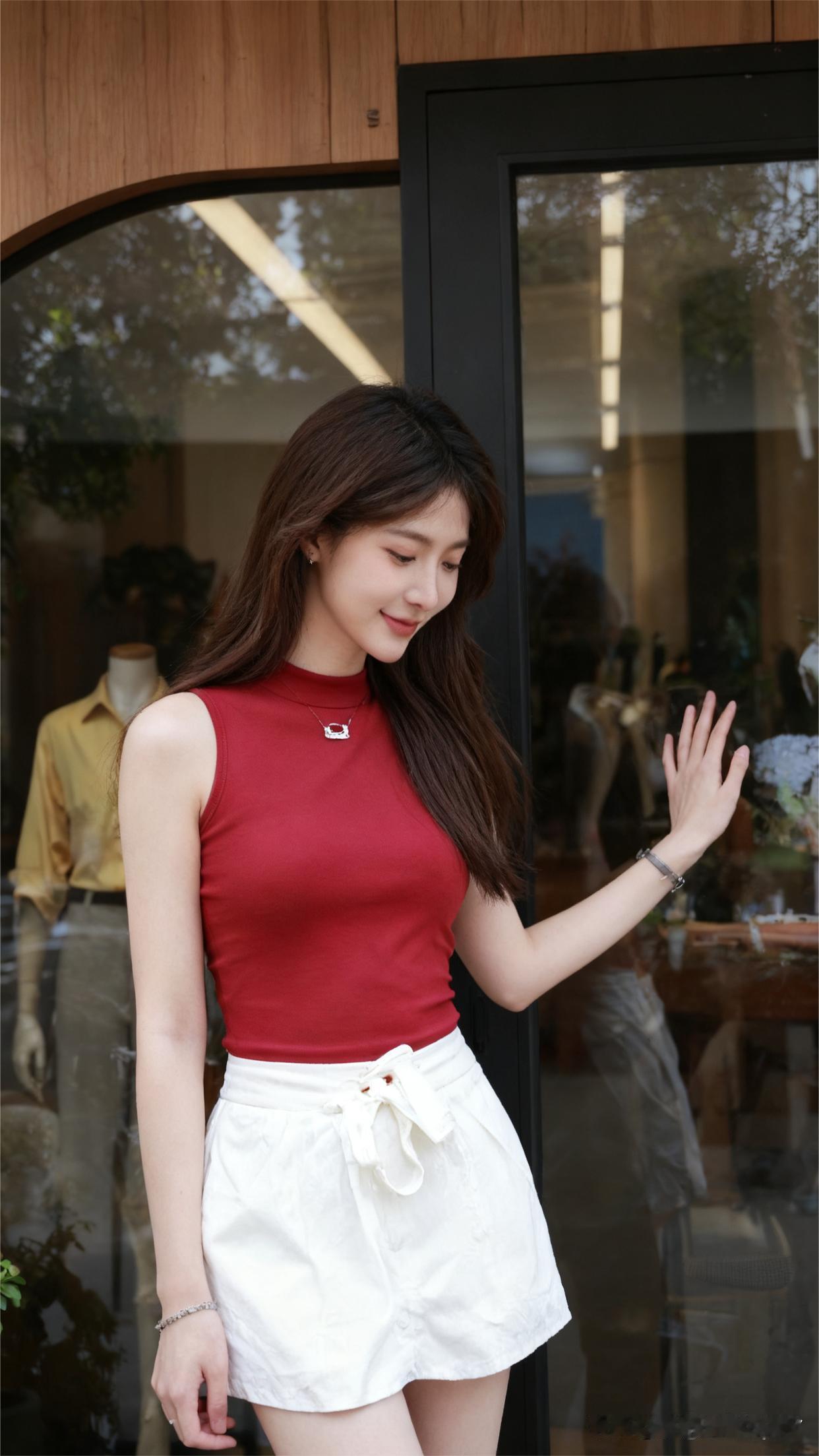 夏日穿搭就讲究个清爽又时尚,红色无袖上衣搭配白色短裙这组合,简直是yyds!像孙允珠穿浅黄无袖针织衫搭白色短裙,简约精致,尽显优雅气质。而红色无袖上衣配白裙,更有一番清新感。再配上红色德训鞋,整体造型时尚感直接拉满。红色的活力与白色的纯净碰撞,走在街上就是一道亮丽的风景线,轻松摆脱夏日的沉闷,让你在炎炎夏日也能清清爽爽做个时尚达人。
