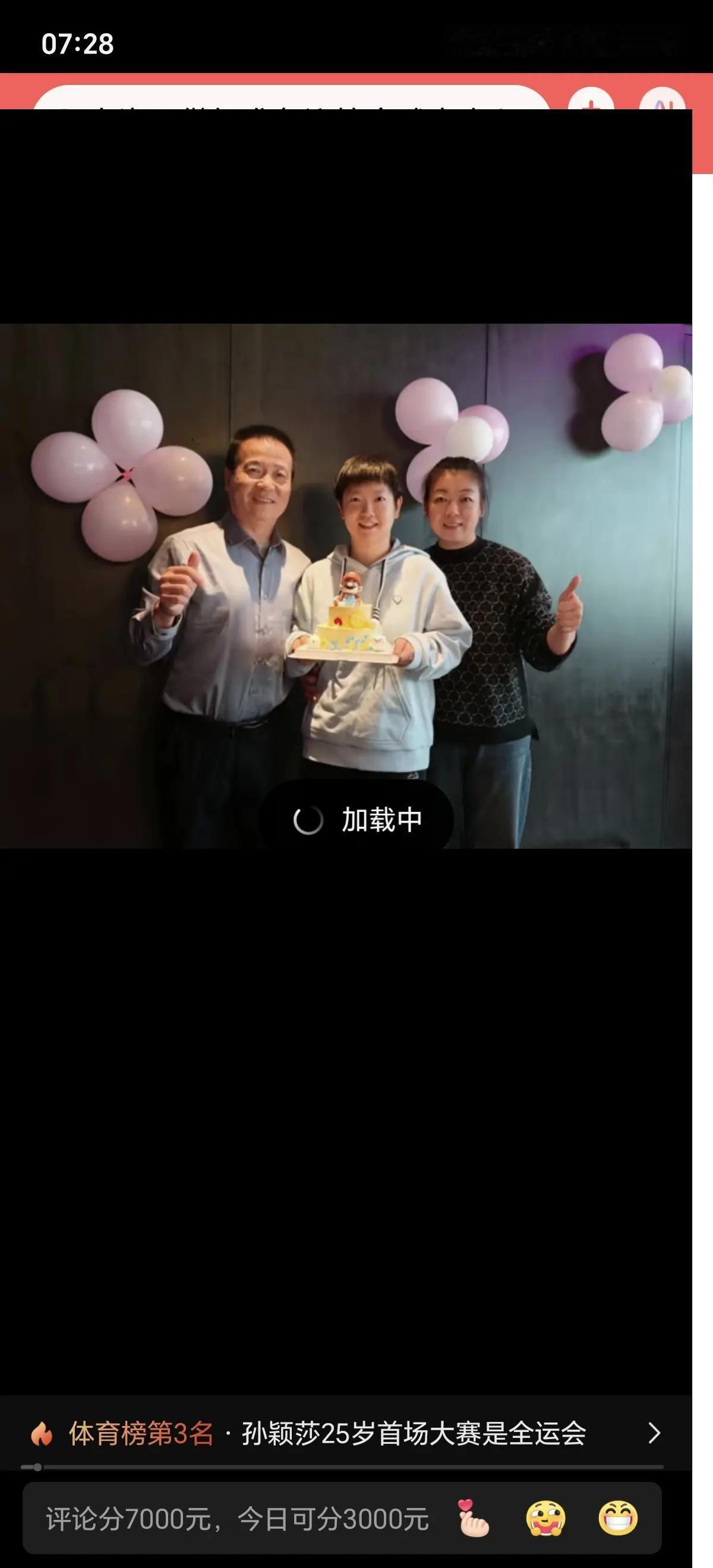 莎莎的25岁生日是和父母一起过的,成了最幸福的孩子,从小离家常年世界各地的比赛,没有时间和父母在一起享受父母温暖的怀抱,今年因为全运会代表自己的家乡比赛,在家乡训练才有机会和父母在一起,享受一家人在一起的幸福美好,莎莎自己也表示我还是那个我,球台前全力以赴的,生活中简单快乐。 愿莎莎付出甘之如饴,愿所得归于欢喜,愿莎莎新岁万事顺意,全家永远幸福快乐。