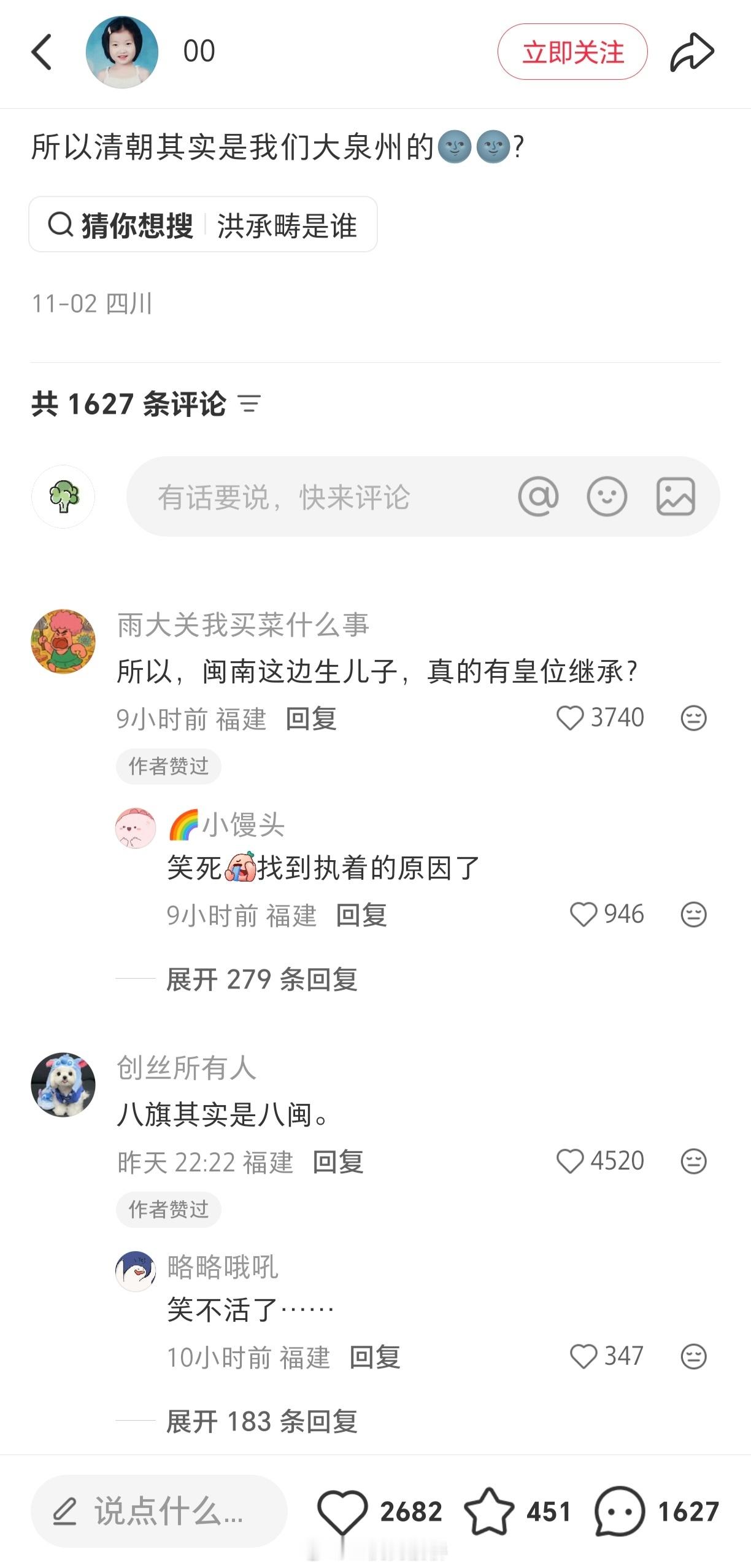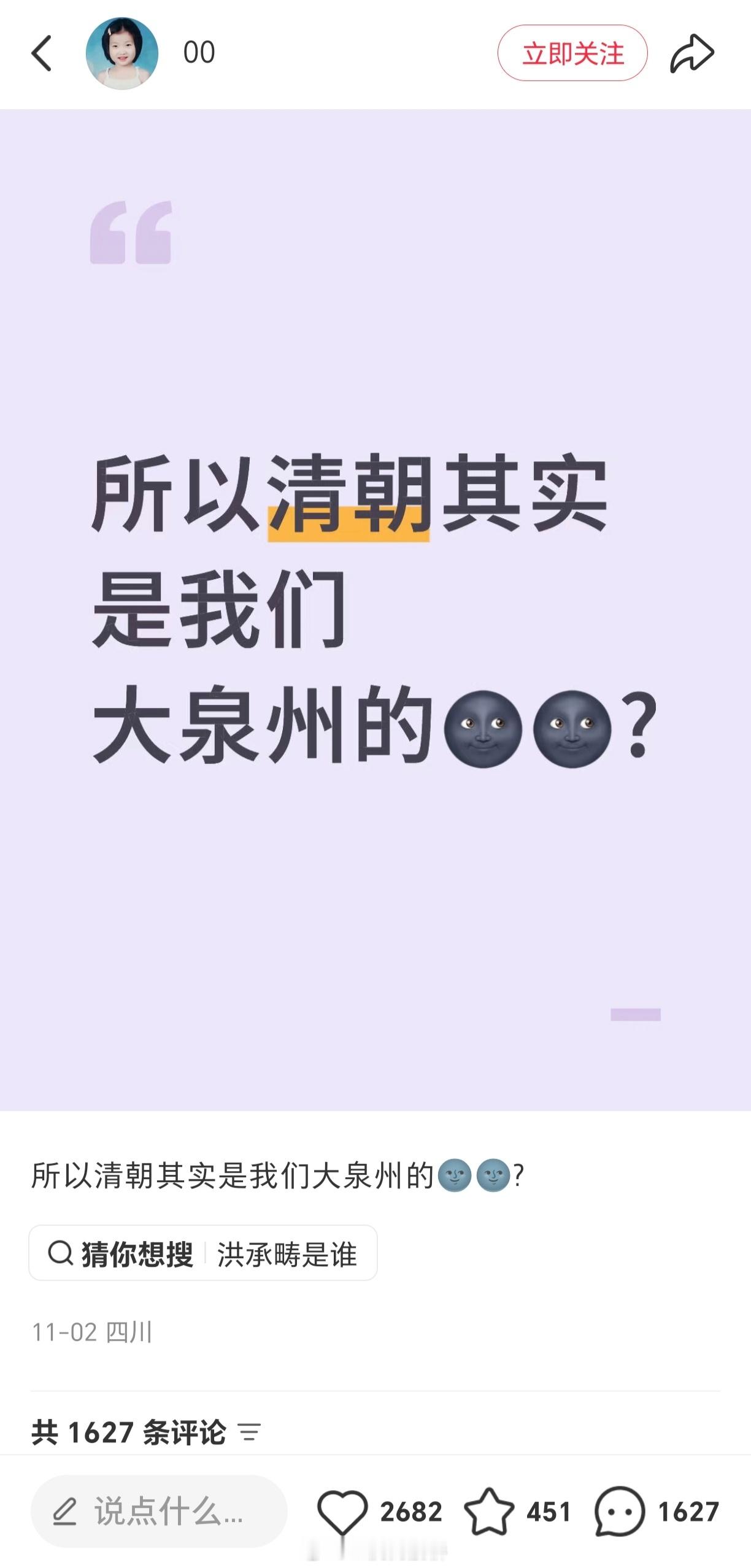 洪承畴(福建泉州南安人)和大玉儿的野史再次dssq之后,某平台出现了这样的帖子…