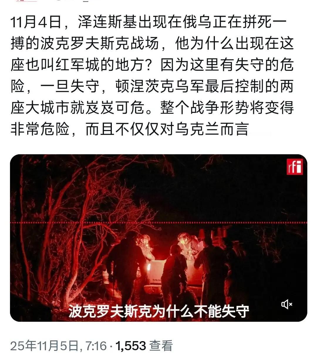 外媒报道,乌克兰总统泽连斯基冒险视察红军城,为乌克兰守军打气。 红军城是顿涅茨克门户,乌军重兵守了一年多。对乌克兰来说,红军城战略地位太重要了,不能丢,斯基这个时候能到红军城视察,说明红军城还没有完全被俄军控制,这也正是斯基向美西方表达的意思。