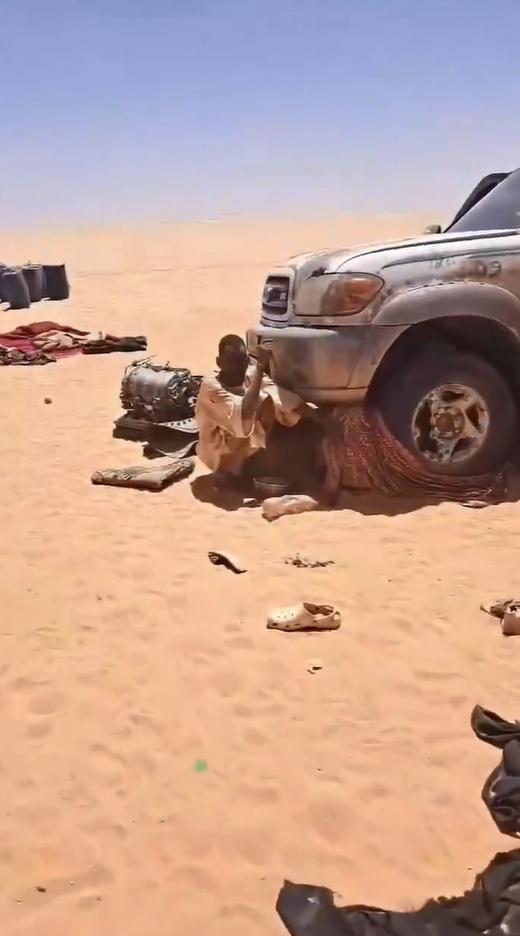 五天前,一辆从苏丹逃难经乍得境内,途经瓦迪霍瓦尔的客车在利比亚境内约40公里处抛锚,当时气温极高。车上载有约30人,包括妇女和10名儿童,他们几乎渴死。好几个躲在车底下。幸亏一位来自库夫拉的居民恰巧正前往乍得,发现了他们。这位居民将自己仅有的少量饮用水分给他们,并开始寻找那些弃车求助的人。他及时找到了他们,让他们都还活着。 抛锚车辆的司机是苏丹人,逃难乘客都是流离失所者。不幸的是,此类事件屡屡发生,因为许多旅行者独自一人驾驶车辆穿越沙漠,且没有通讯工具。务必格外小心——切勿独自出行。沙漠从来都不安全。