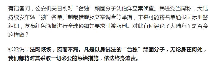 法网恢恢,疏而不漏! 看来,“台独”顽固分子沈伯洋是跑不掉的!