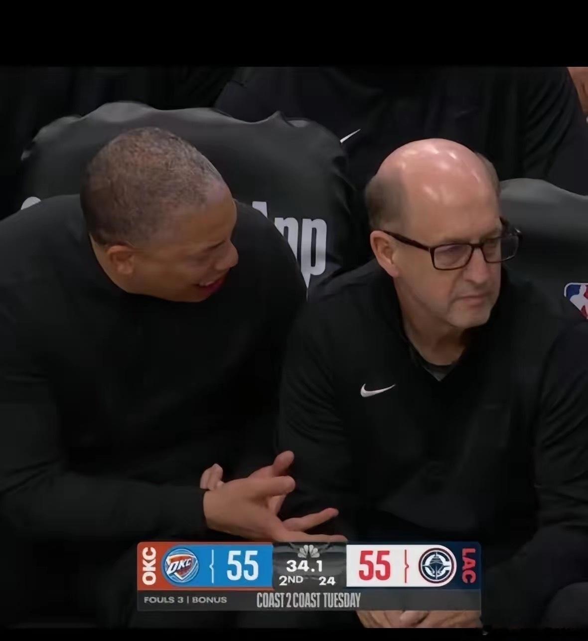 今天快船背靠背对阵雷霆的比赛,凭借哈登单节17分出色的发挥,快船队在首节取得了10分的领先优势,但在第二节最后时刻被追平比分。泰伦-卢第二节的轮换调整和挑战使用让人不解,甚至连首席助理教练范甘迪都生气了,任凭泰伦-卢在边上怎么说话,就是不搭理他。