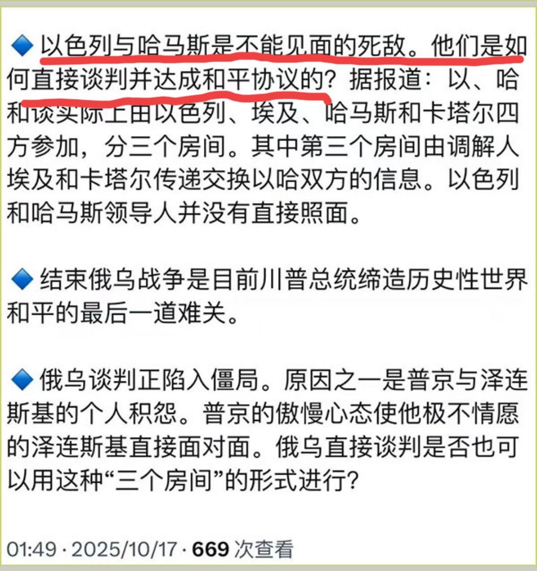 “三个房间”,促成以色列与哈马斯直接签署“和平协议”! [笑][笑][笑]