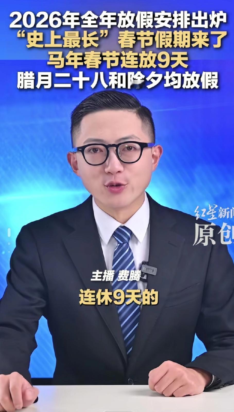 这也太爽了吧!!! "史上最长"春节假期就要来了,2026年春节连放9天,腊月28和除夕都是放假的日子。太好了,这对于打工人的我们来说真是个天大的好消息,不管怎么说,在临近年关时能早些回家还是非常开心的。法定节假日安排 国家放假安排 新春放假时间