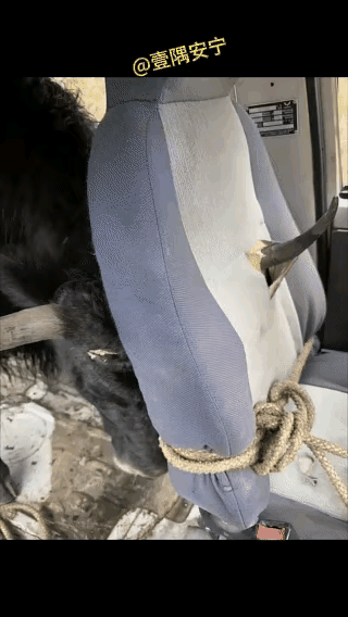 这个开车的人很牛,把面包车后面的座位卸下来装上一头牛,这头牛也比较有牛脾气,居然向开车的人发起了攻击,实实在在说,真是够危险的了,不知道开车的人受伤没有。