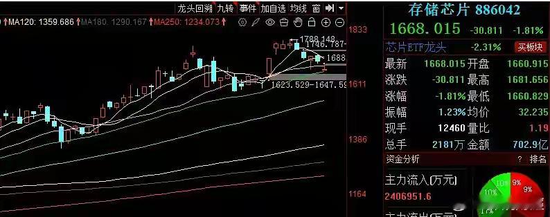 今天存储芯片是下跌的,板块指数下跌超1.6%,板块内个股也以下跌为主。