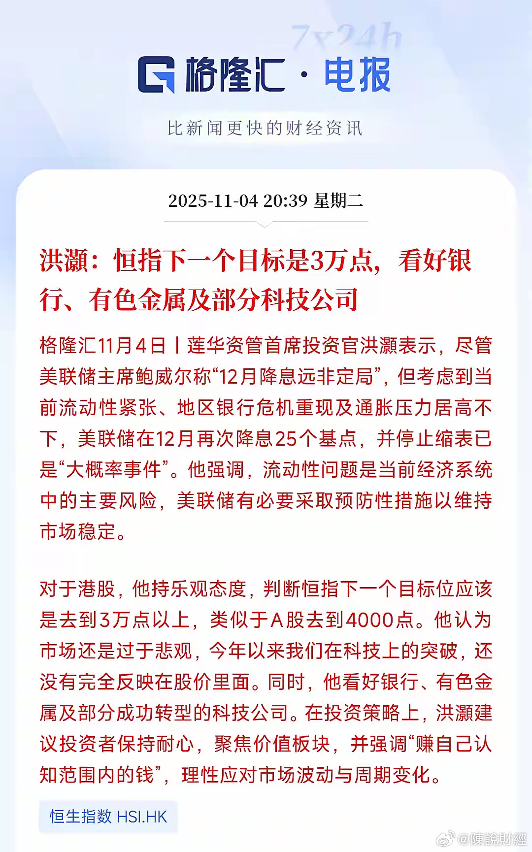 投资官认为:美联储今年还会降息25个基点,流动性上面没有问题,更多的要看恒生指数的情况。