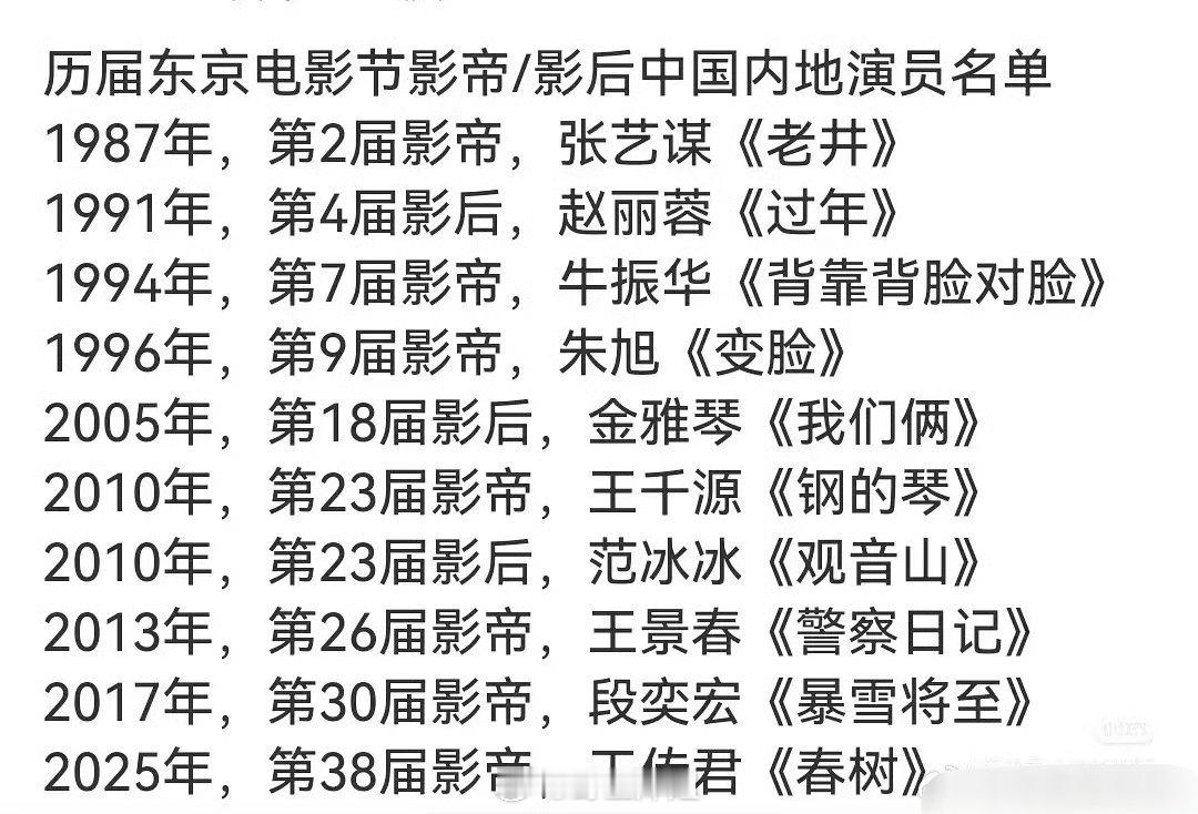 有网友汇总了历届东京电影节影帝/影后中国内地演员名单,第一个拿奖的就是张艺谋啊,前前后后一共有十位拿到奖项,是不是都是实至名归的情况啊?