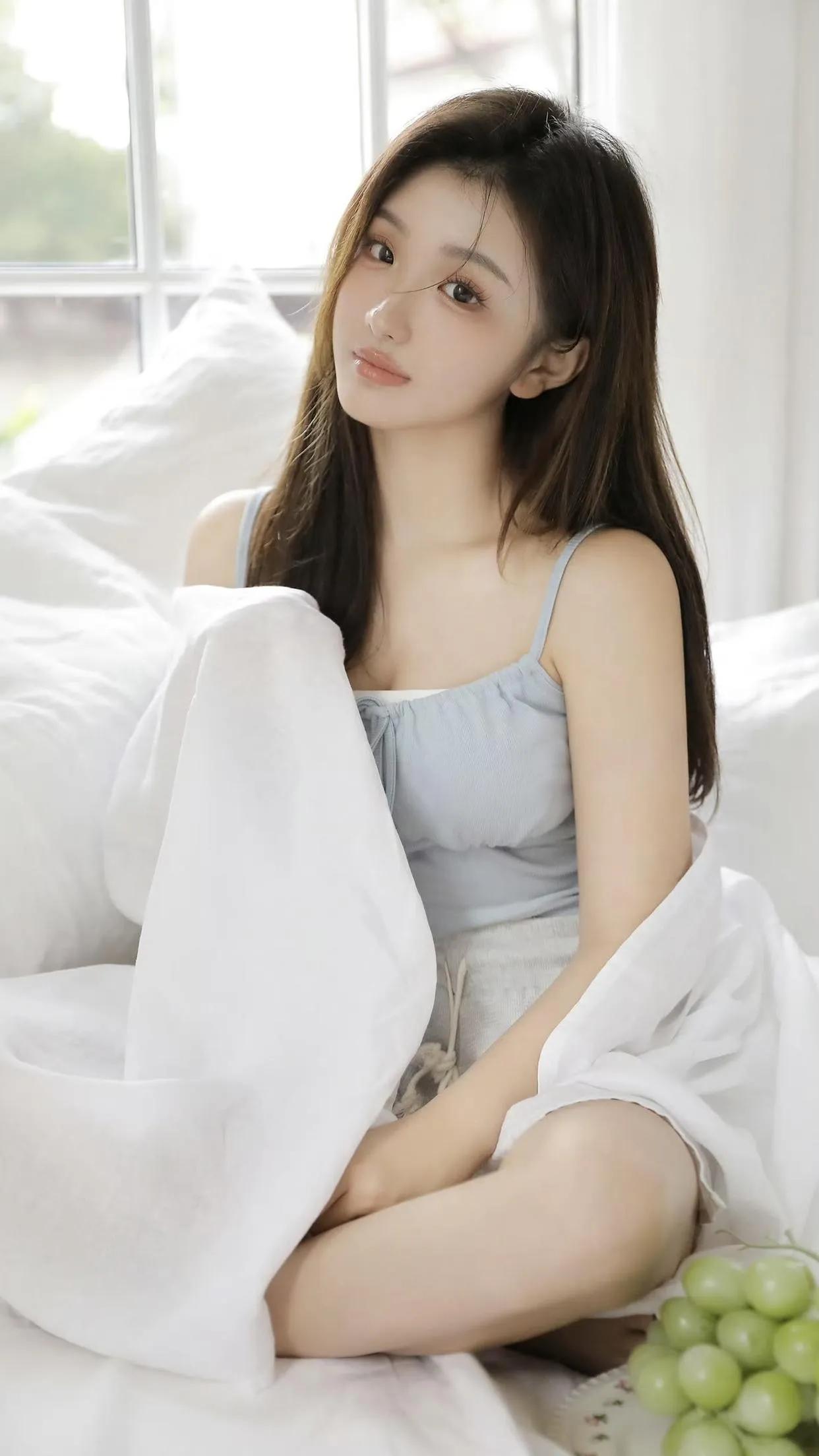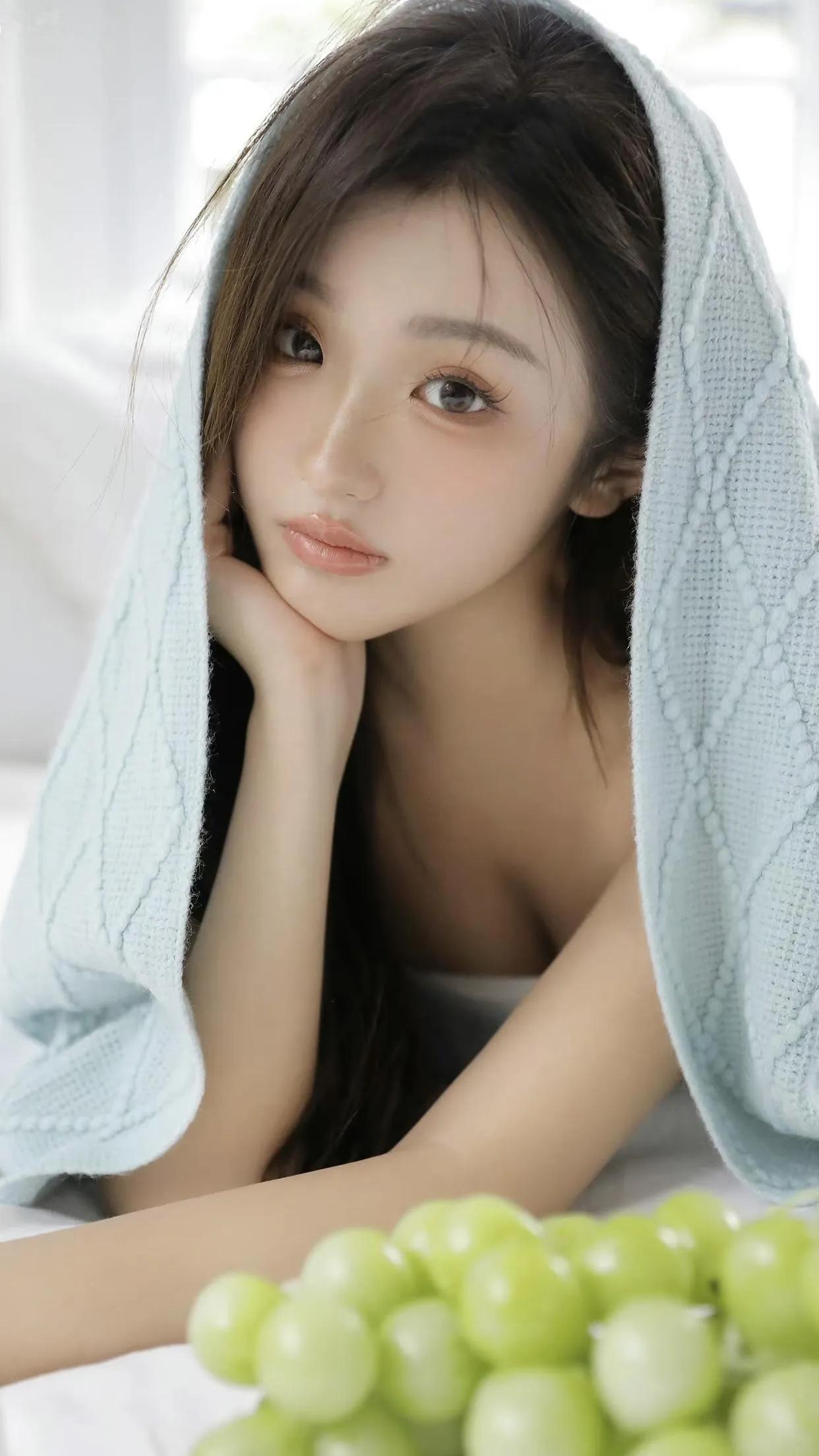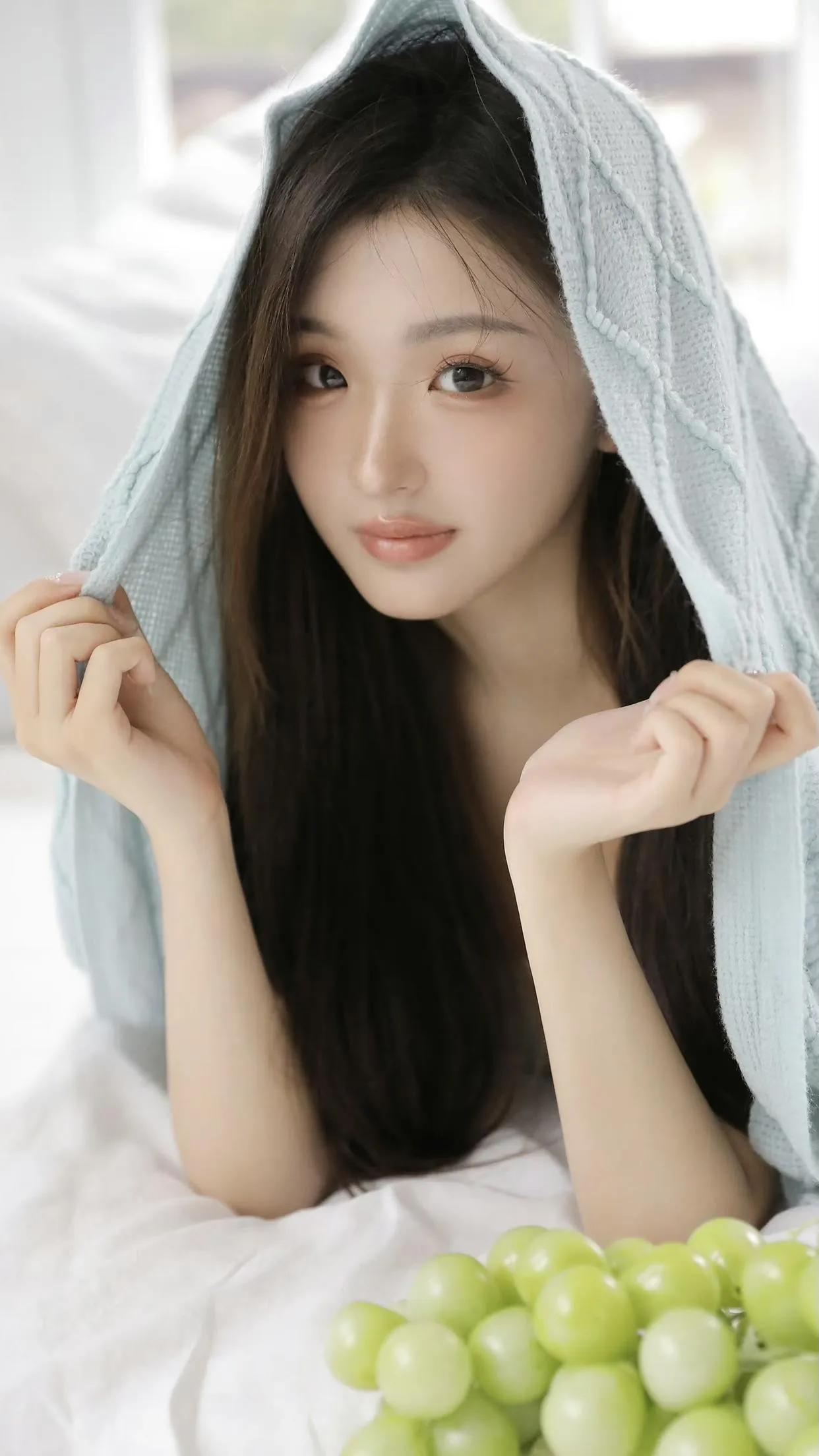 夏日清新穿搭,浅蓝色连衣裙搭配葡萄,少女心满满!🌞👗🍇