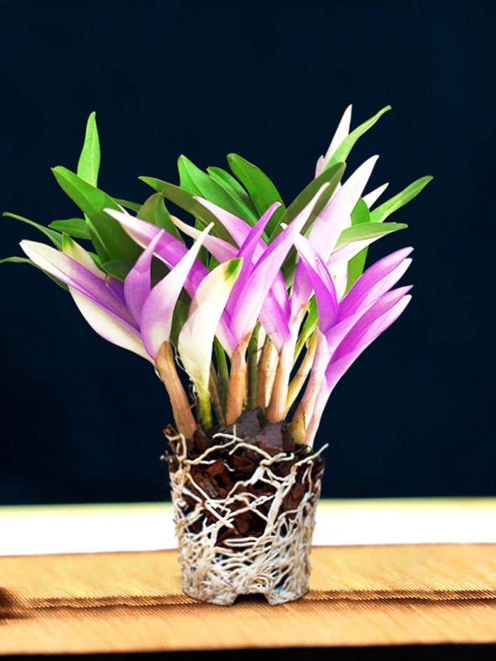 我以前养过一盆七彩石斛兰,叶片颜色丰富,很是艳丽,味道芳香淡雅。可惜,养过一年枯萎了。 七彩石斛兰是在网上认识的,看着颜色艳丽,很是高雅,便动了购买养育的心。 我选了五年的苗,七株,正好满满一盆。拆开包装,根部还是湿漉漉的,水分很足。 叶片有红、绿、黄,紫等颜色,淡而不浓,很像画上去的,倒不像真实的。 凑近还能闻到淡淡的清香味,换入大盆栽植,用水草包裹,没用田园土和营养土,保住了盆里的透气性和透水性,便于成活成长。 石斛兰喜欢散光,也喜欢通风,更喜欢潮湿的环境,但不喜欢强光直射和积水,很容易干叶和烂根。 根据石斛兰的生长习性,安放在适合的位置,每日观察它的生长情况和细微变化,每有异常变化,就查阅养护资料变换培育方式。 半年时间里,长势很好,还长出了新的枝条,也开了艳丽的花朵,很是可人。 好景不长,渐近年底,枝条慢慢干枯,失去了往日的生机,叶子也有些枯萎。 翻盆查看,根系已经枯烂,无法继续生长。养育石斛兰的梦想就此破灭。 究其枯萎的原因,还是没有控制好盆内的湿度,浇水过于频繁,导致根部积水烂根。还有一个原因是室内干燥,湿度没上去,枝叶得不到水分的润泽,慢慢枯萎。 你也有养育花草的故事吗?不妨讲出来,一起分享。