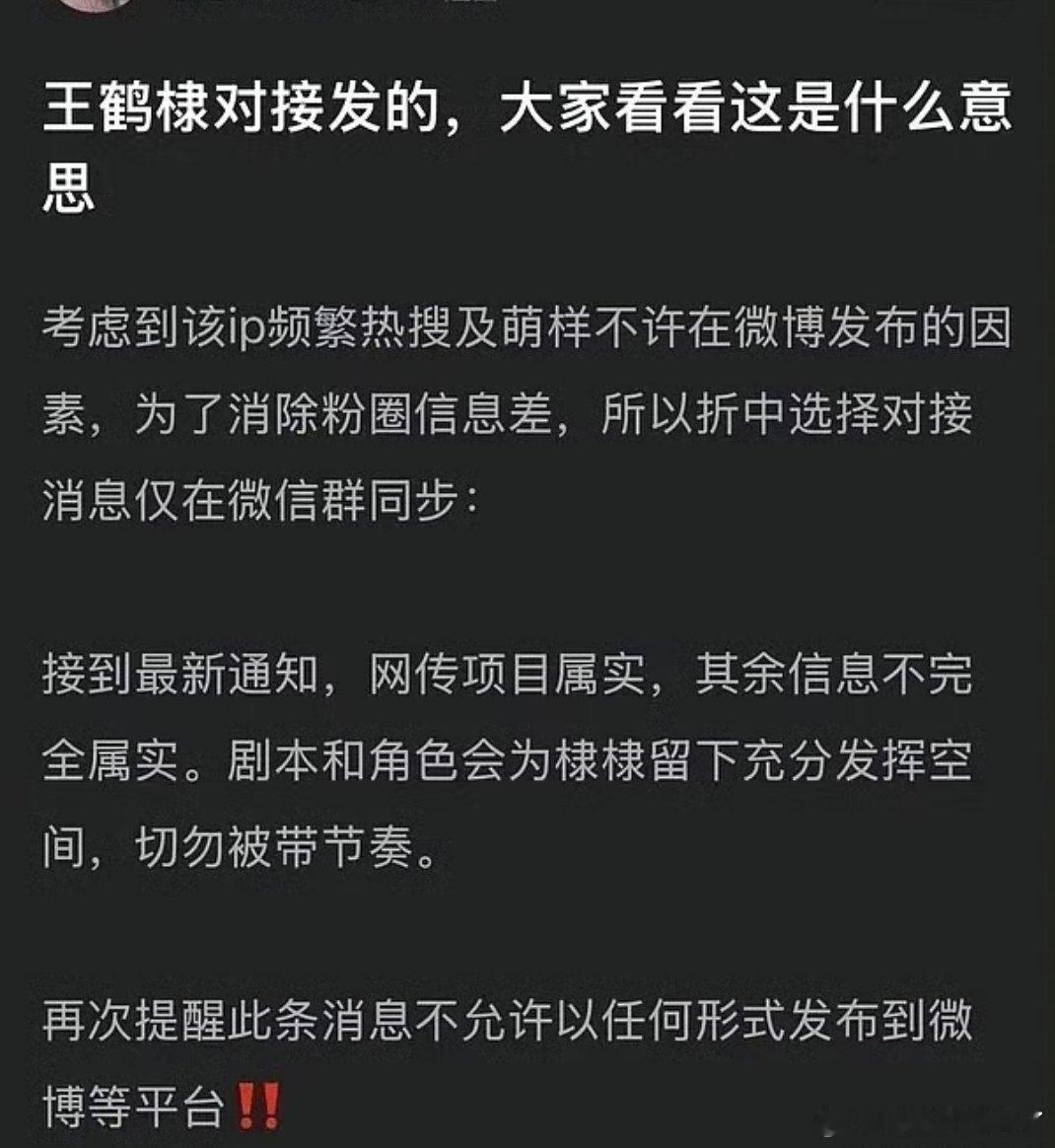 王鹤棣对接:网传项目全属实。剧本和角色会为棣棣留下充分发挥空间,切勿被带节奏。意