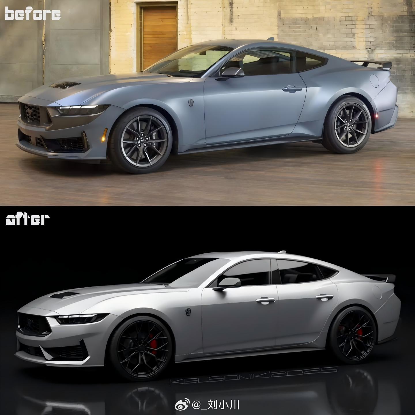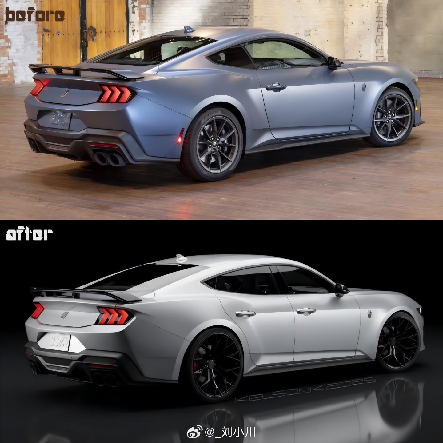 【新车渲染】福特Mustang Dark Horse四门版渲染图,与两门版对比,为了实用性,大家觉得帅度打了几折[举手]