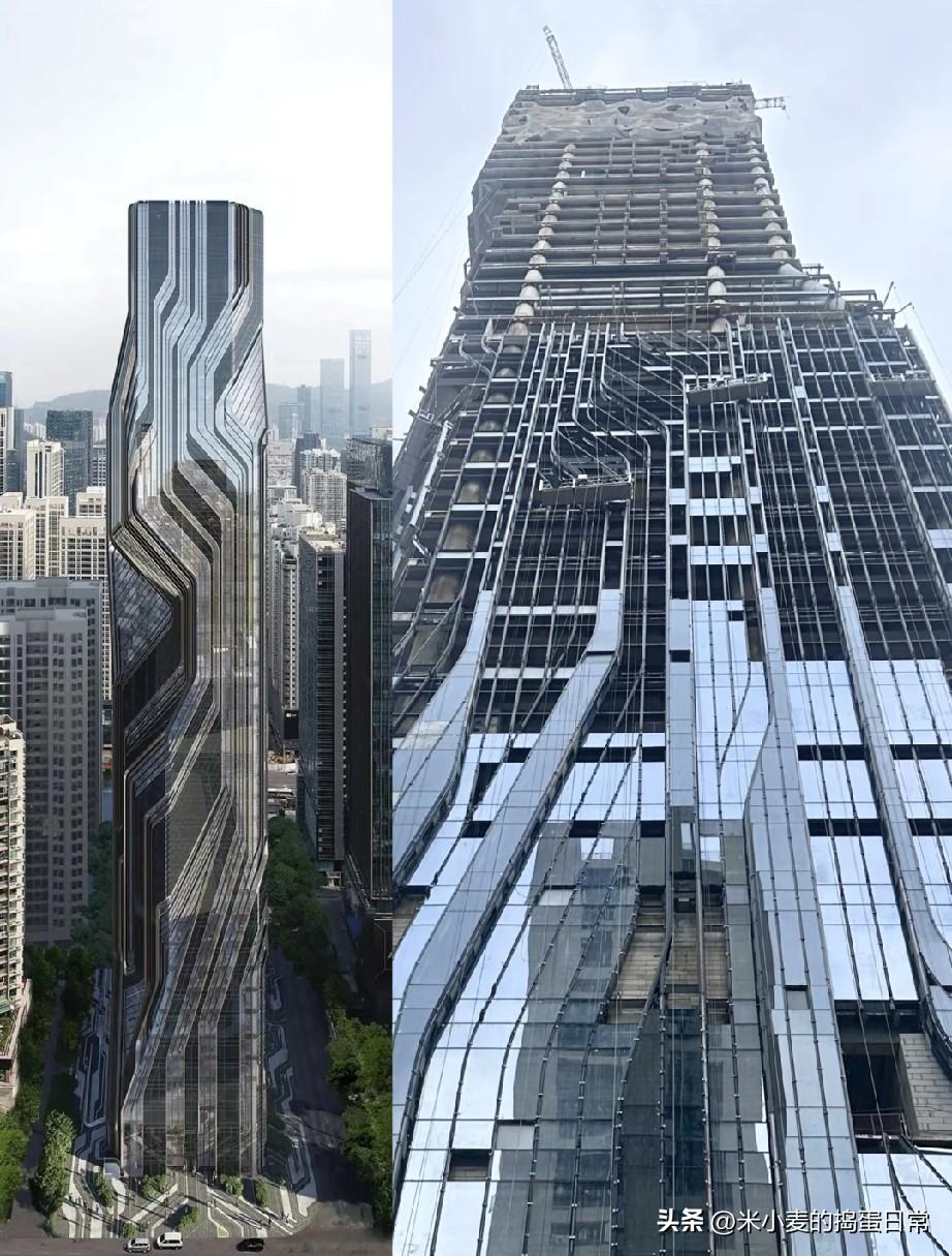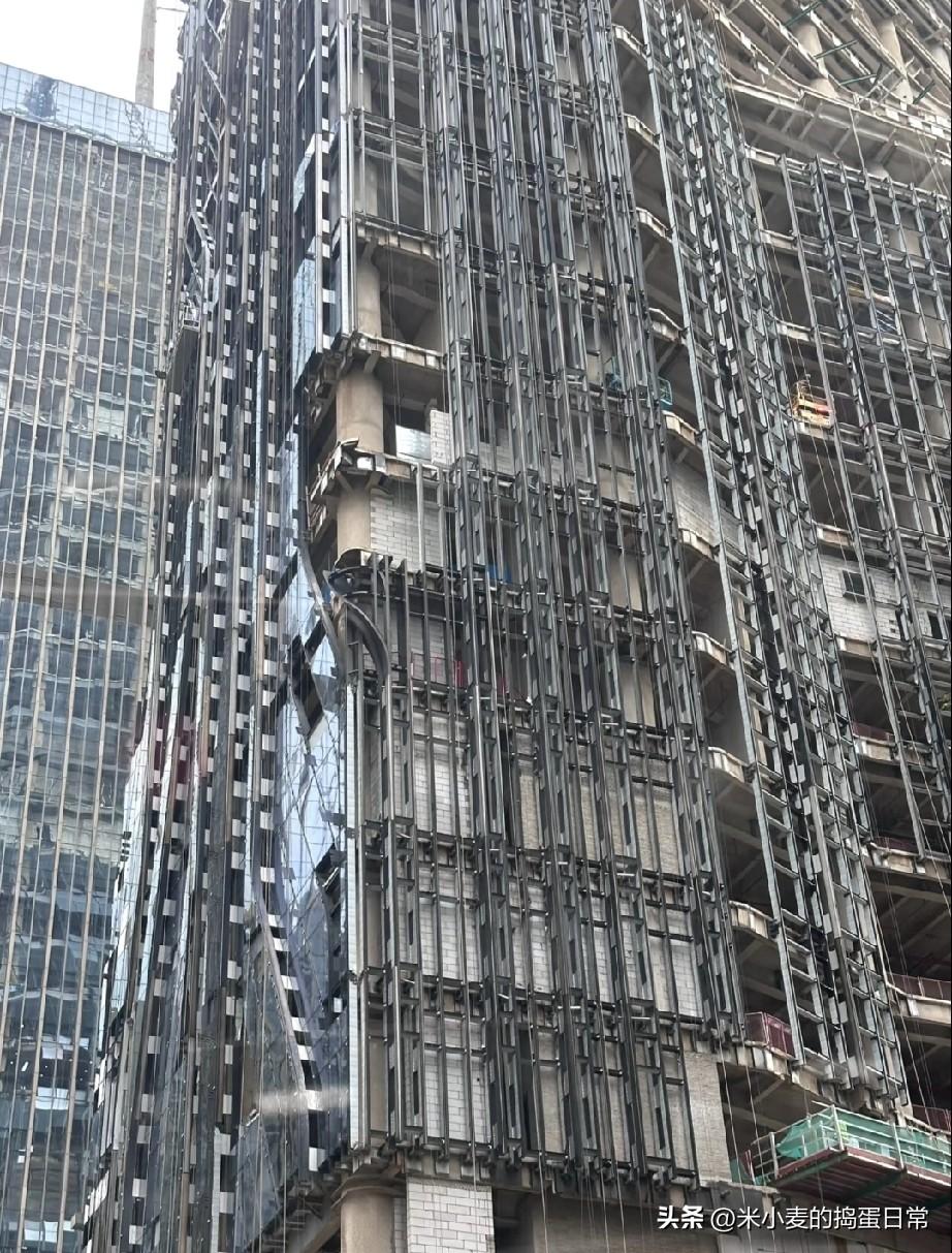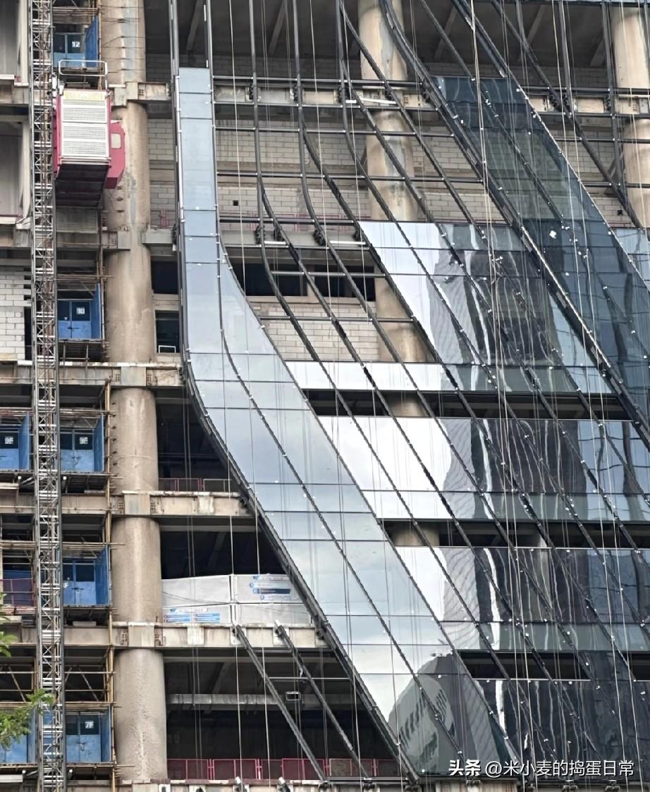 扎哈事务所设计的楼,真的很费玻璃! 今日路过扎哈建筑事务所设计的深圳(福田)金融科技研究院大厦,项目的建设进度又有重大更新。 8月份,塔楼已经安装好立面龙骨构架。时隔2个月,发现低区外立面玻璃幕墙已大面积安装了,想必后续工程进度会进一步加快了。 根据建筑日照模拟分析需要,建筑被切割成不规则形体。幕墙系统采用交替变化的透明和深色玻璃,宽度各不相同,蜿蜒向上延伸至屋顶。 近距离看,每一块玻璃都不规则,横向纵向线条也不一致,构成了几何形状效果,对于施工工艺和玻璃品质要求太高了。不过目前实际安装后呈现出的局部外立面效果,与渲染图还存在差距。 期待古铜色装修条和其他区段安装后的完全体。