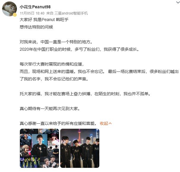 Peanut在INS、X和微博三个平台发长文,其中小花生特别提到S10来到中国的事,那时候是他职业生涯的低潮期,但来到了LGD,Peanut完成的对自己的救赎,重新打出了自信!