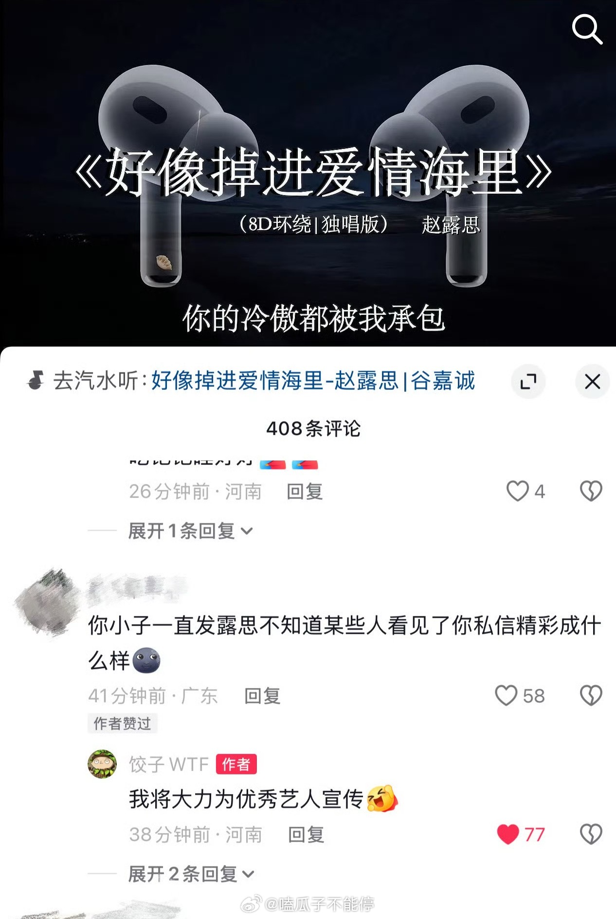 dy上的音乐博主特别喜欢赵露思新歌,就这样大力支持[good]说赵露思是优秀艺人[good]