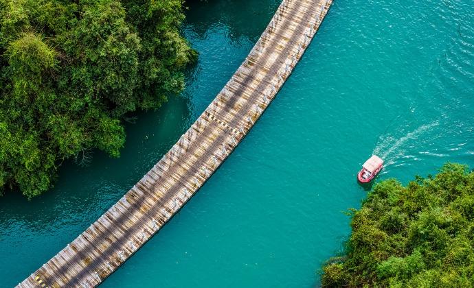 抵达狮子关,瞬间被山水治愈!318米的S形浮桥果然名不虚传,驾车以20码驶过,桥身随碧波轻晃,“车行碧波上”的画面真实上演。观景台远眺,峡谷如油画铺展,猕猴在林间蹦跳,偶有桨板爱好者划破水面。逛到狮子洞,对着崖壁大喊一声,灯光便随声音亮起,童趣又奇妙。这里没有节庆的热闹,却有最本真的山水之美,正好给疲惫的身心充个电。知音湖北遇见金秋 @YC傅先金