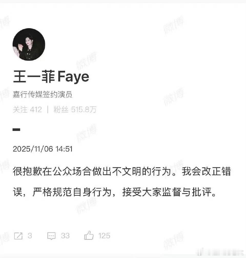 王一菲致歉了,态度很好啊,也不逃避找理由王一菲抽烟