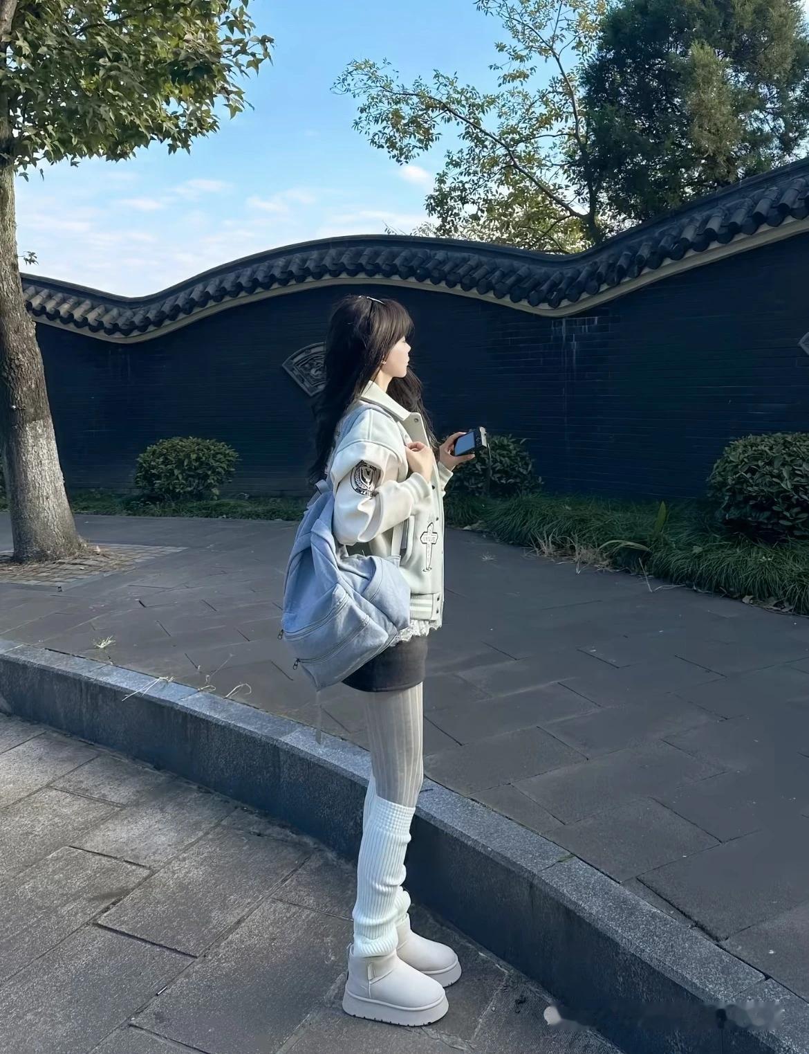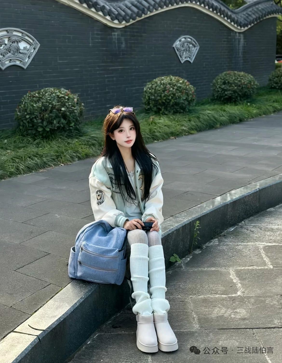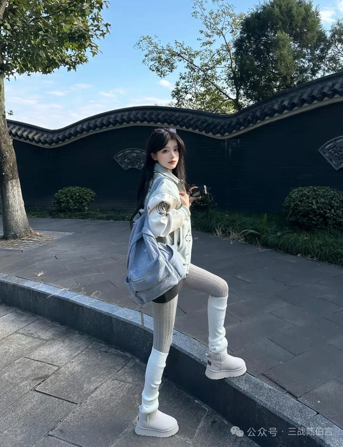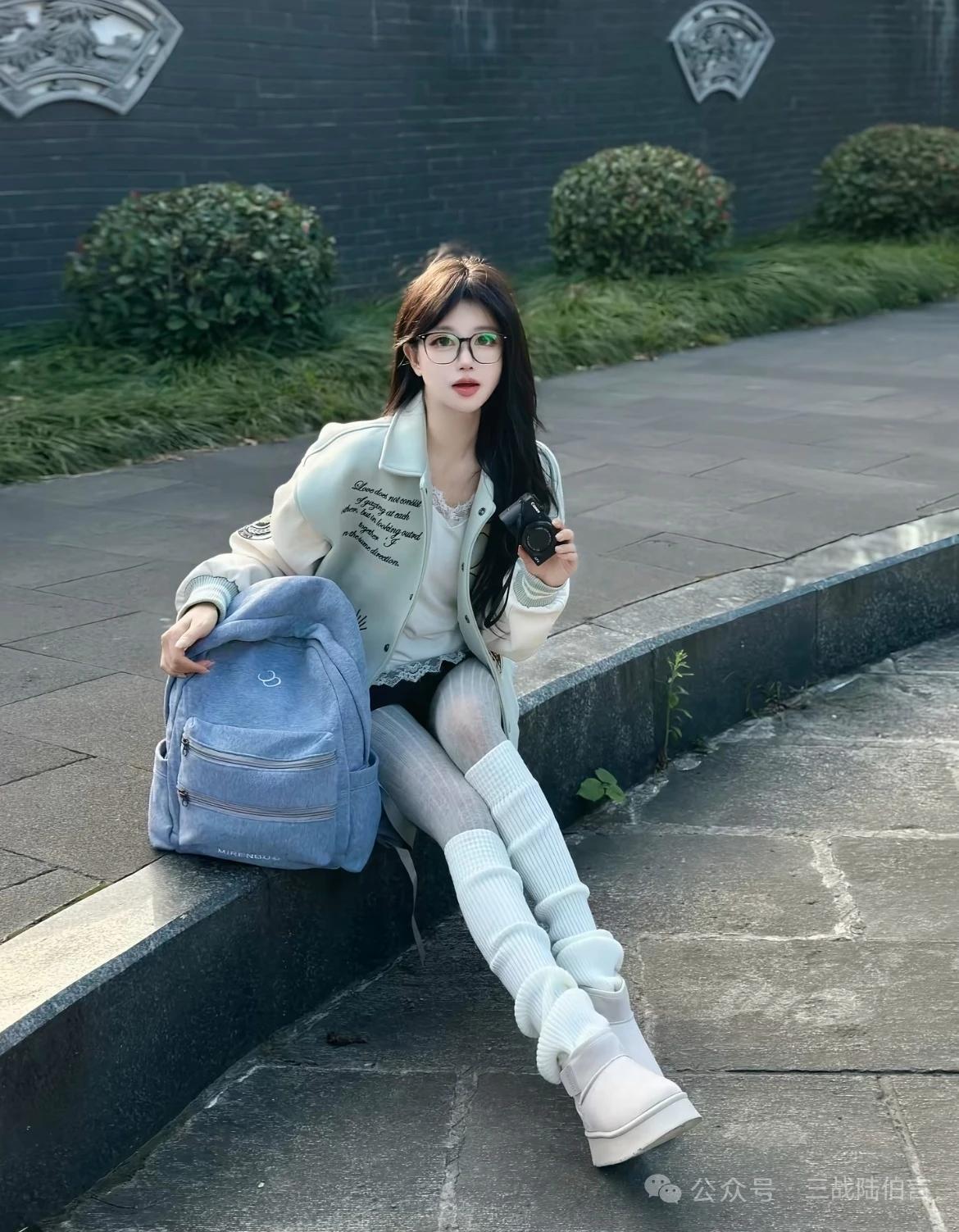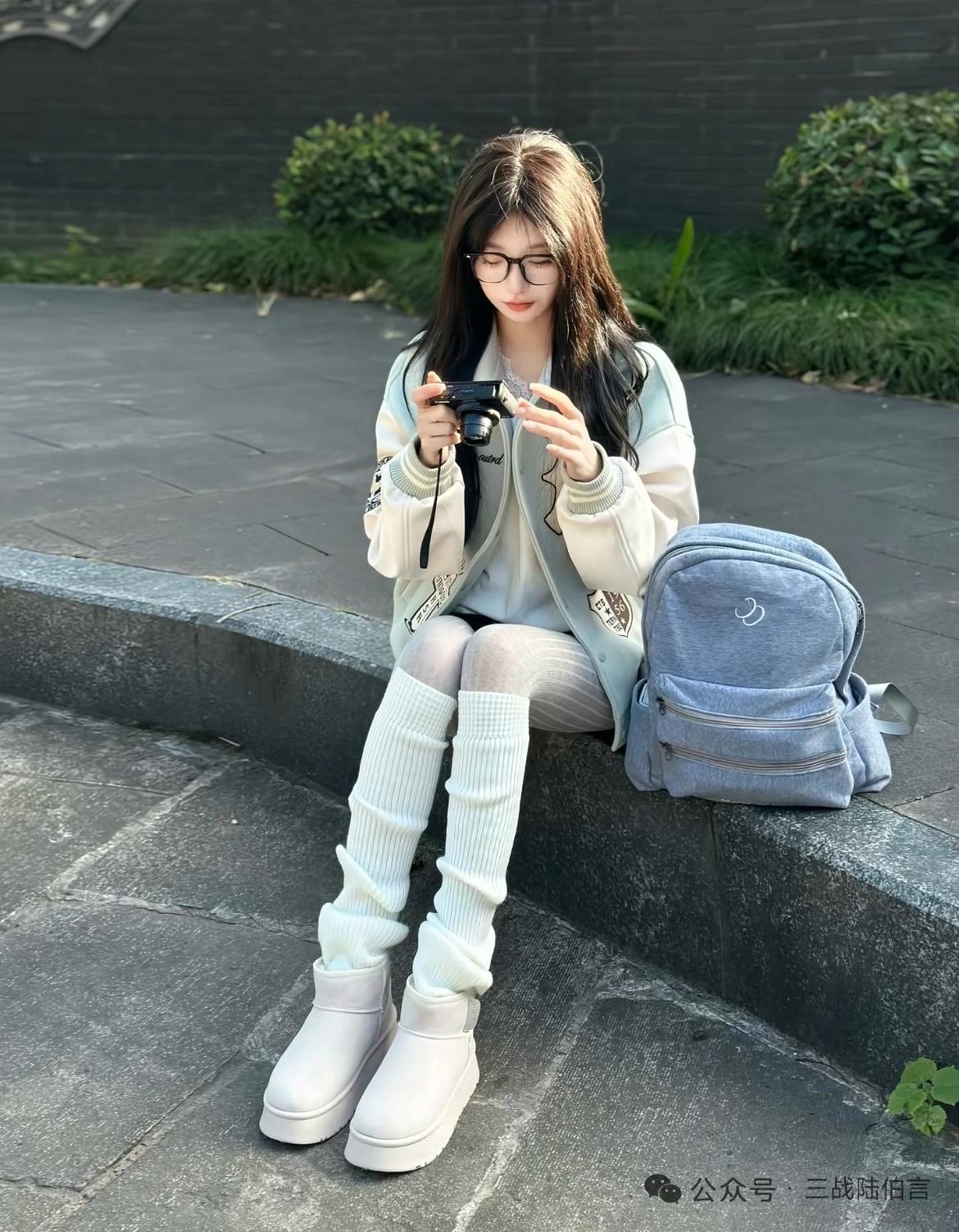 颜值cos:粉青叠暖意,袜间藏甜冬