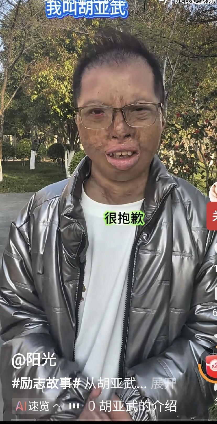 一个救人的平凡英雄胡亚武, 1997年6月,在武胜路一工地【武汉建工三公司-金马大厦】的地下室, 18岁的胡亚武不顾一切为抢救3个中毒昏迷的工友,遭遇电灯泡+易燃气体爆炸受伤。 后来被及时赶到的消防队员救出送往武汉市3医院抢救,几次生死相对,是坚强不想死的信念最终挺过来了! 全身烧伤面积达80%以上。虽然保住性命,但是面部严重毁容,达伤残一级。 我们永远记住你这个帅哥,你平凡而伟大。 向你致敬[玫瑰]