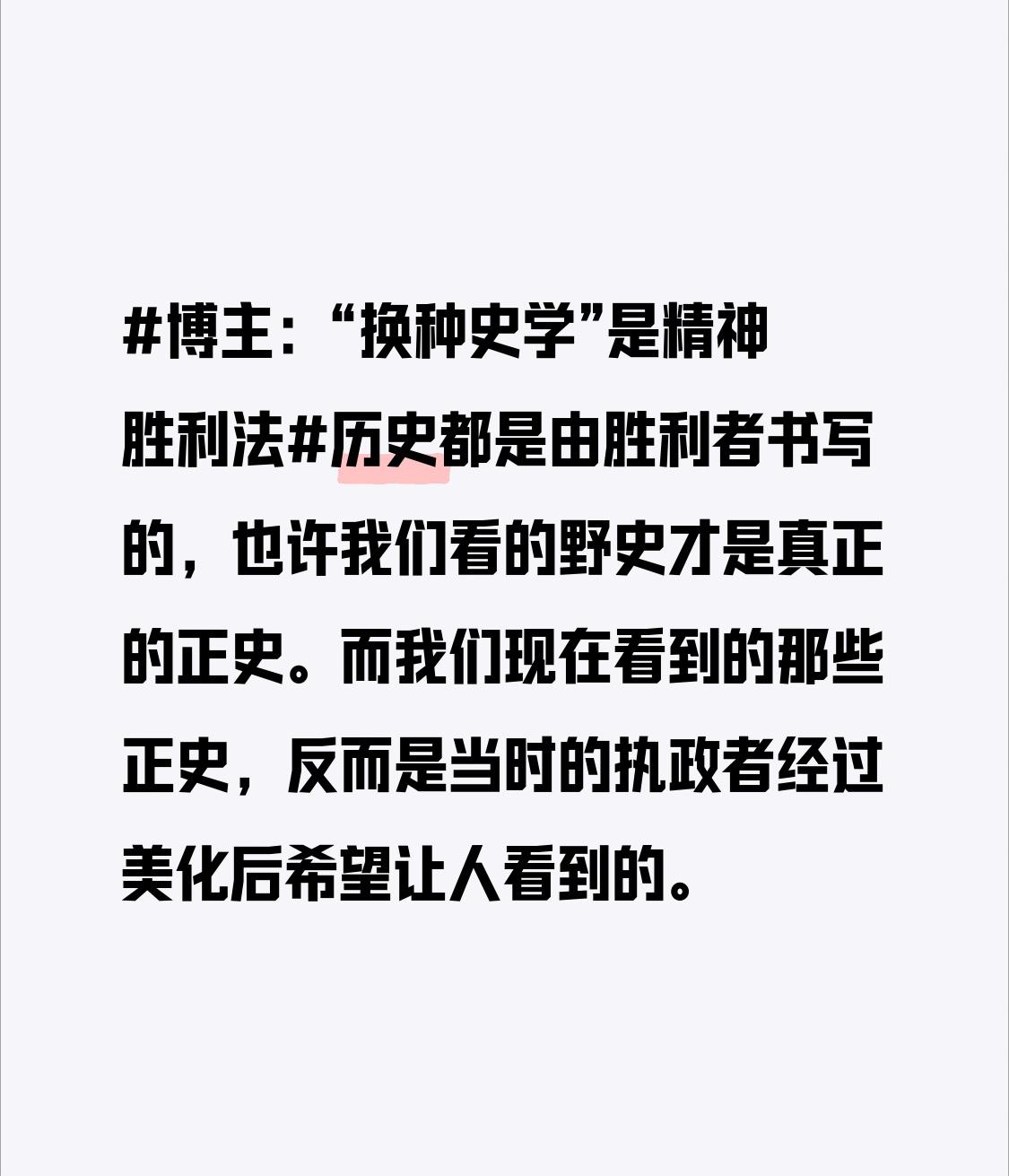历史都是由胜利者书写的,也许我们看的野史才是真正的正史。而我们现在看到的那些正史,也许是当时的执政者经过美化后希望让人看到的。