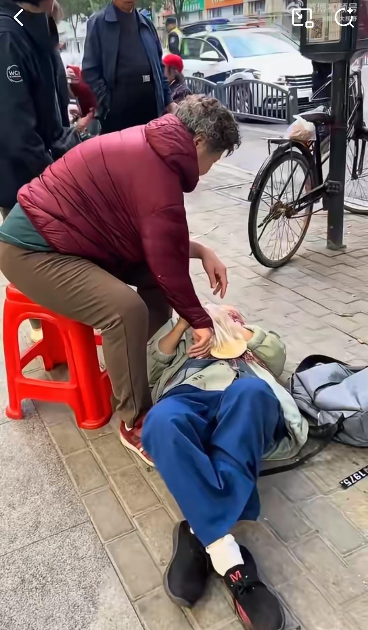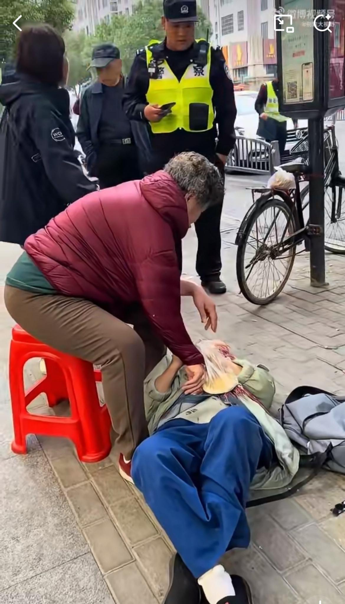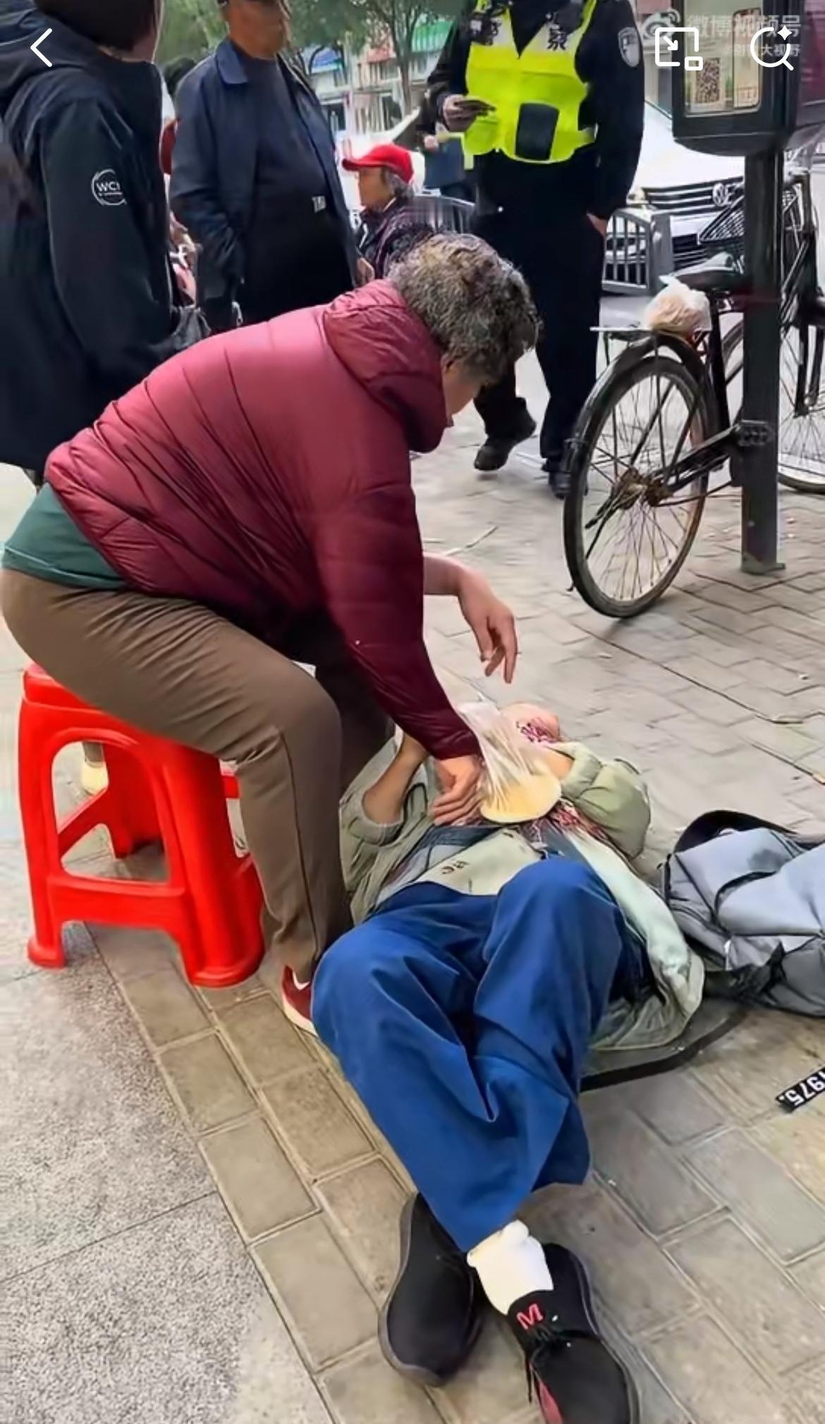 今早令人心寒的一幕,老太去扶更老的老太,结果被讹上了。周围的人都在说,躺地上的人不讲良心,穿红衣的老太是发善心去扶她,为啥要赖上人家。只见躺地上的老太紧紧的拽住红衣老太的手,坚决不让她走。红衣老太没有发火,但是很是无赖,周边的人都在说公道话。扶老人被讹 扶老人反被诬陷