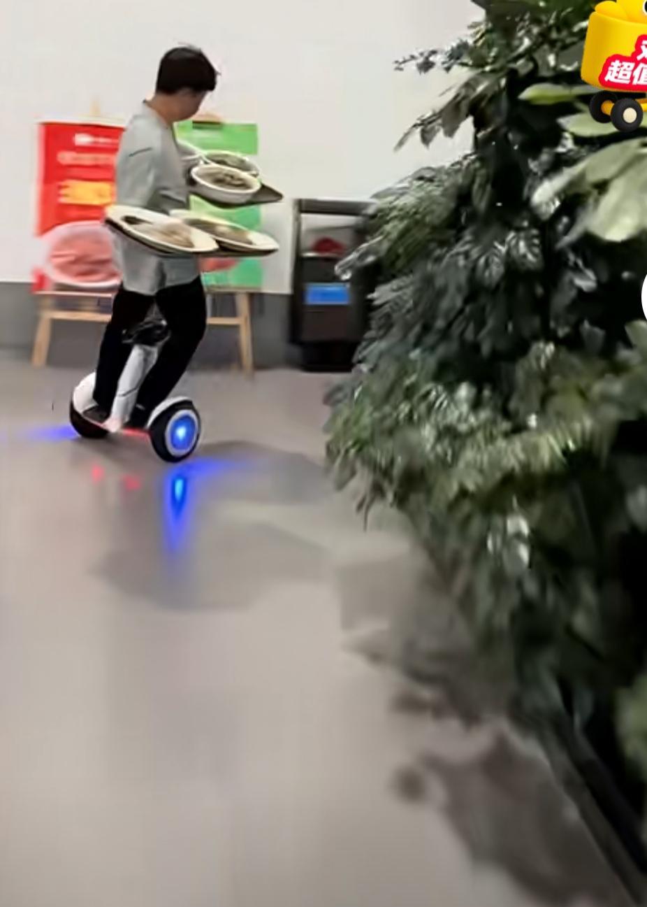 北京外卖小哥骑平衡车送餐,单手端着饭,路上晃得像跳街舞。 不是酷,是拿命换单。