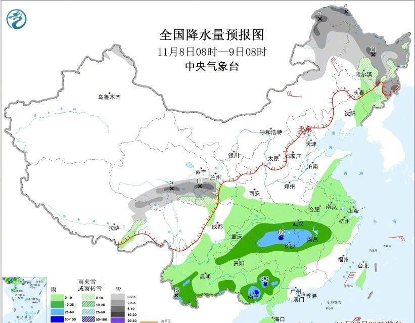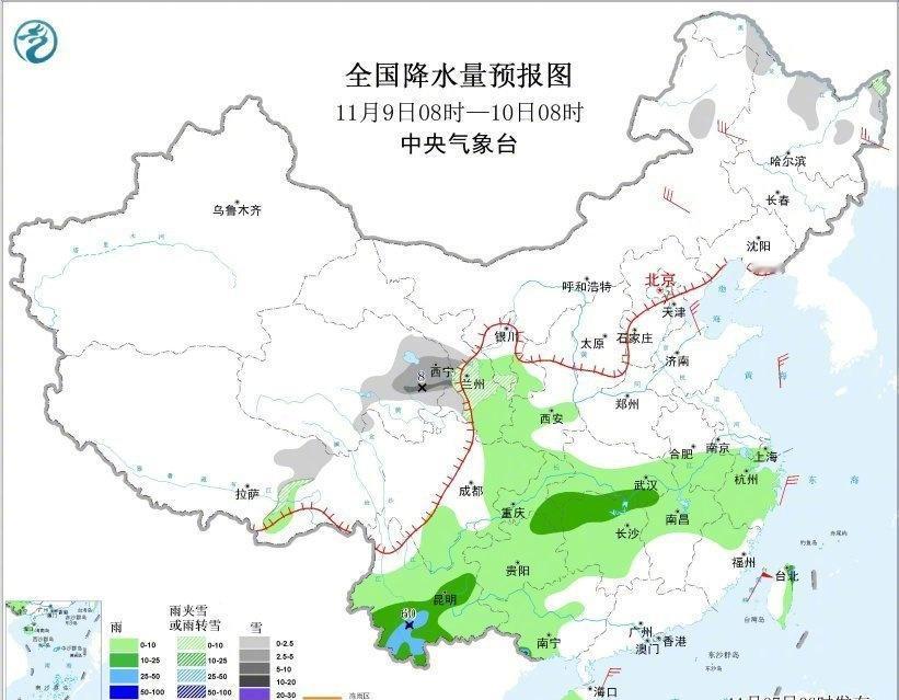 【较强冷空气继续影响我国中东部】冷空气和快递哪个先到 11月7日至9日,较强冷空气自西向东继续影响我国中东部地区。新疆东部、内蒙古、西北地区、华北、东北地区、黄淮等地有4~6级偏西风、阵风7~8级;上述地区气温下降4~8℃,局地降温10℃以上;青海东部和南部、甘肃西南部、内蒙古东部、黑龙江北部和东部等地的部分地区有中到大雪或雨夹雪,局地有暴雪,新增积雪深度2~6厘米,局地10厘米左右。此外,西北地区东部、华北、东北地区南部、黄淮、江汉、江淮、江南大部、西南地区东部和南部及华南中西部有小到中雨,局地有大雨或暴雨。 受“海鸥”残余环流和南下冷空气的共同影响,7日08时至8日08时,台湾海峡、巴士海峡、南海北部和西部及东沙群岛、西沙群岛、南沙群岛西部、琼州海峡、北部湾将有5~7级风、阵风8级。 预计,7日早晨至上午,河北南部、河南中北部、山东北部和东部、山西南部、湖北南部、江西中部、福建西北部等地的部分地区有大雾。其中,山东东部、江西中西部、福建西北部等地的部分地区有能见度不足500米的浓雾,局地有能见度不足200米的强浓雾。