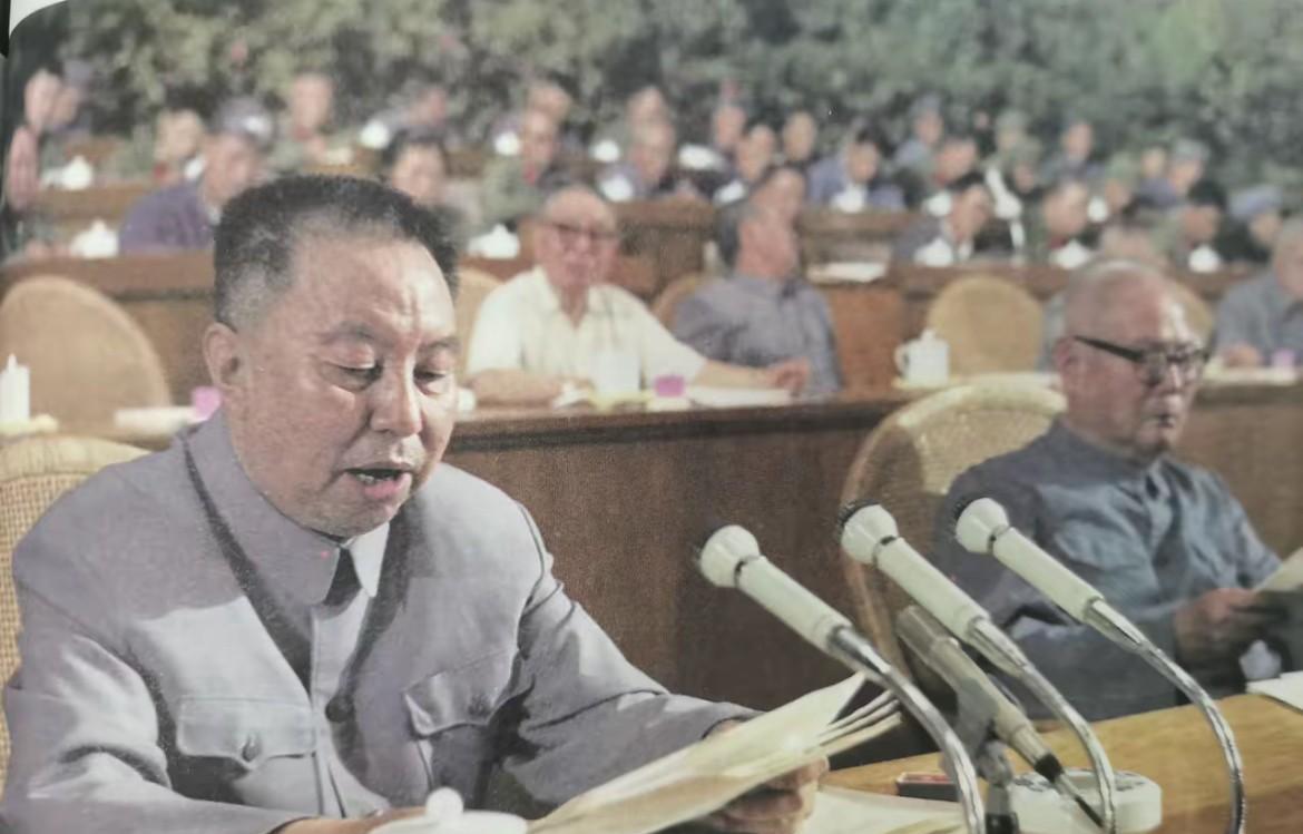 1976年7月28日,河北唐山发生里氏7.8级大地震,造成重大人员伤亡和财产损失。地震发生后,中共中央迅速成立抗震救灾指挥部,华国锋同志受党中央委托率团深入灾区慰问群众,指导救灾工作。图为1976年9月,华国锋同志在唐山抗震救灾表彰大会上发表讲话,叶剑英元帅在旁出席的情景。#历史#