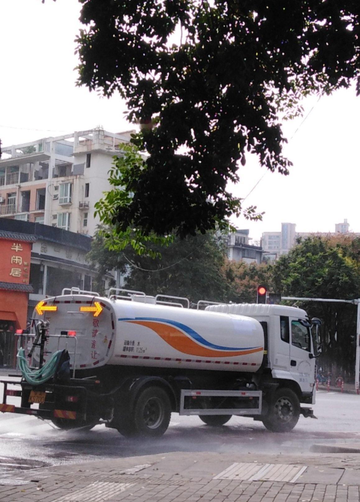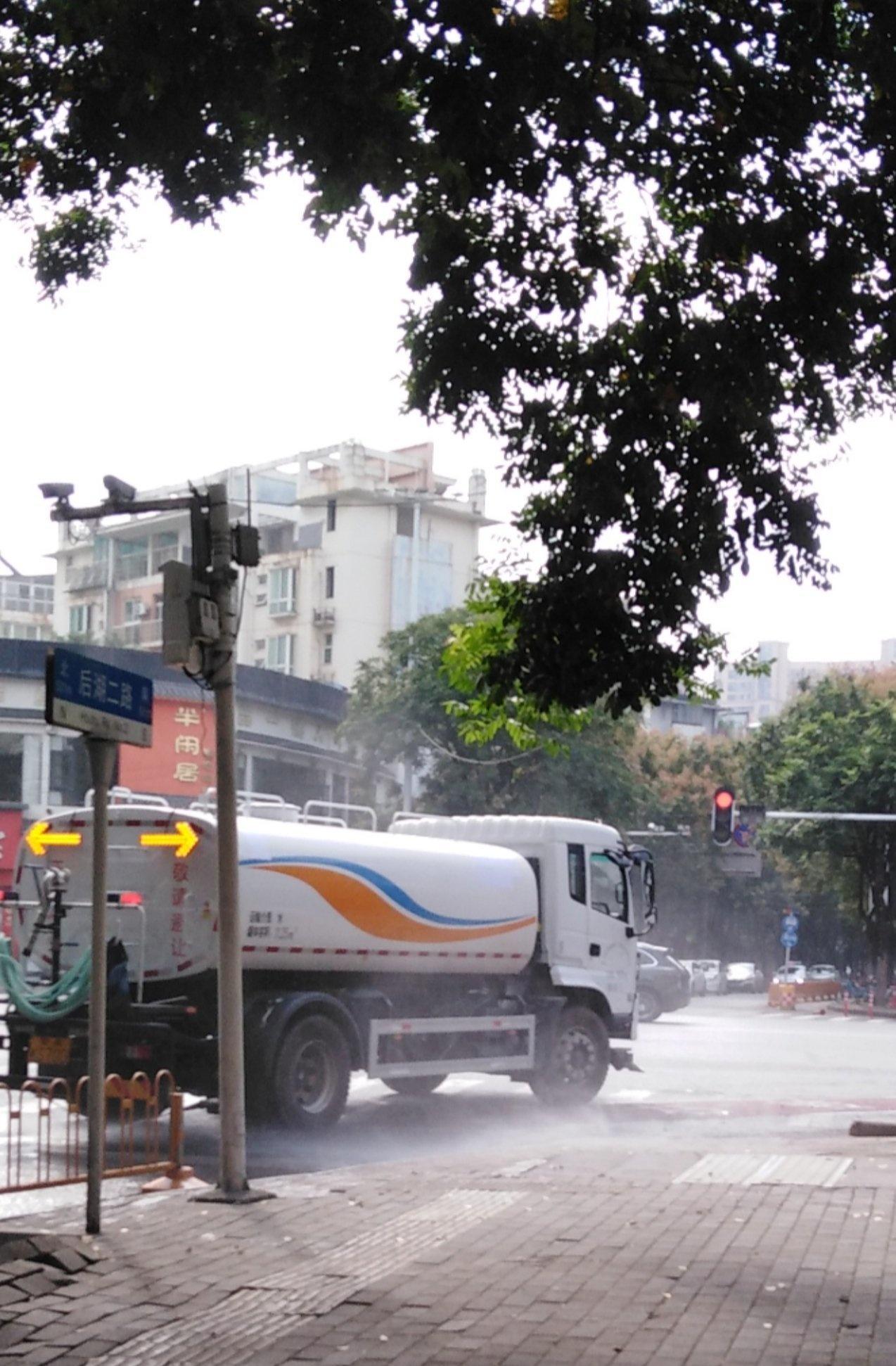 0元玩转这座城治愈系慢生活 洒水车特色街景随手拍 这是洒水车送你的一道彩虹 洒水车洒出了一道道彩虹 洒水车彩虹 漫步城市街区 便民服务环卫车洒水车