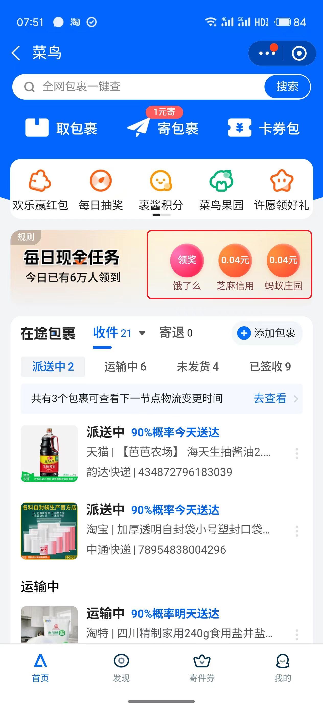 薅羊毛,白捡的不能不要 这个签到真的没有附加条件,也不用看广告,只是点击打开即可 zfb里搜索菜鸟