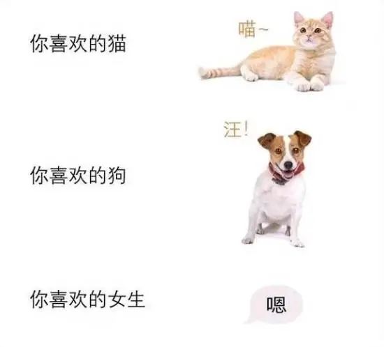 你喜欢的猫:喵 你喜欢的狗:汪 你喜欢的女生:嗯
